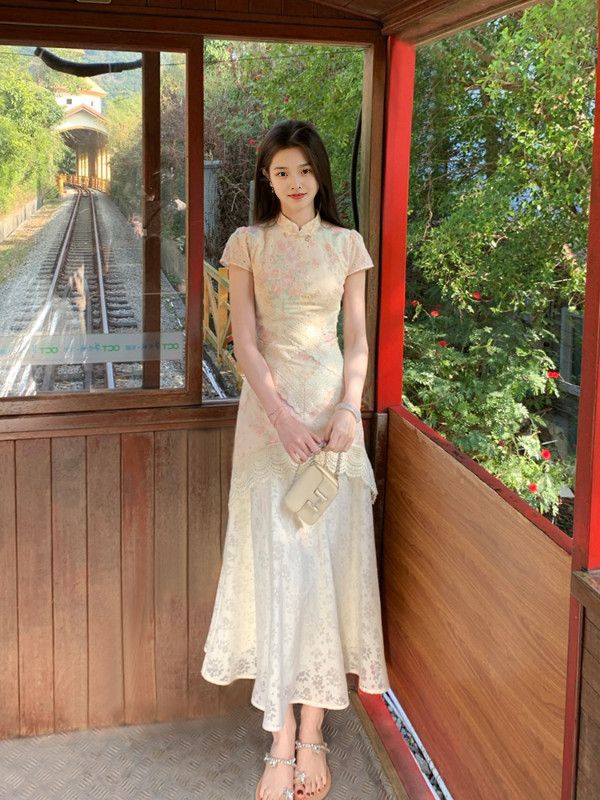 司藤と同じスタイルのチャイナドレス、2025年夏の新作、若い女の子向け、エレガントでレトロなチャイナドレス、改良版ドレス