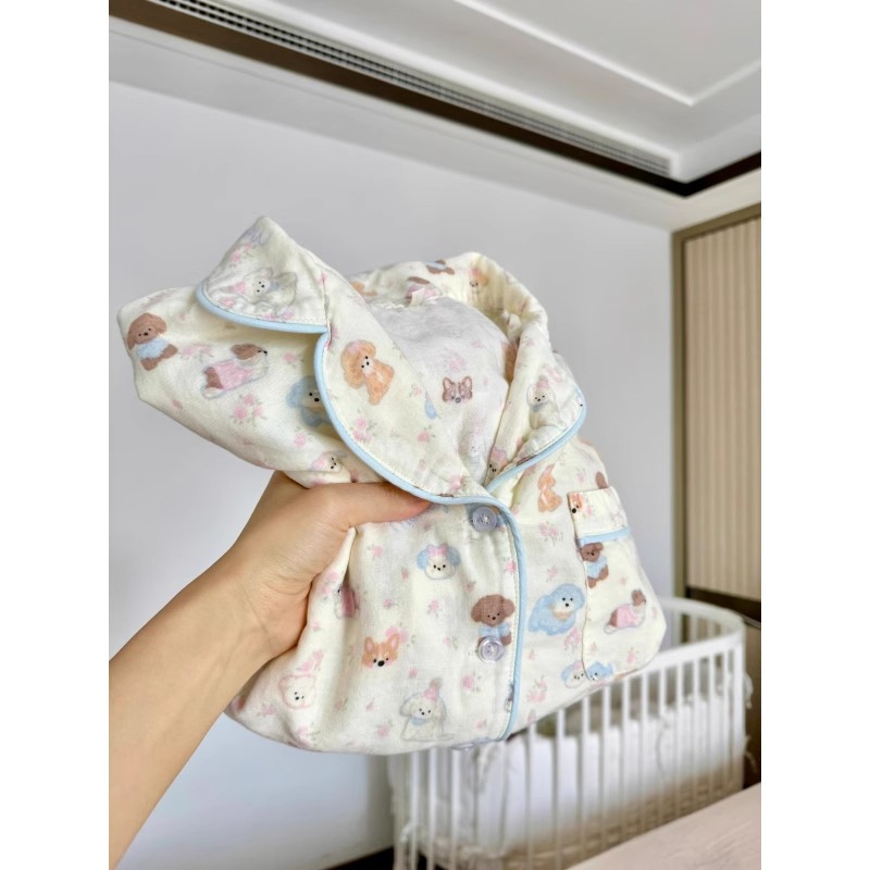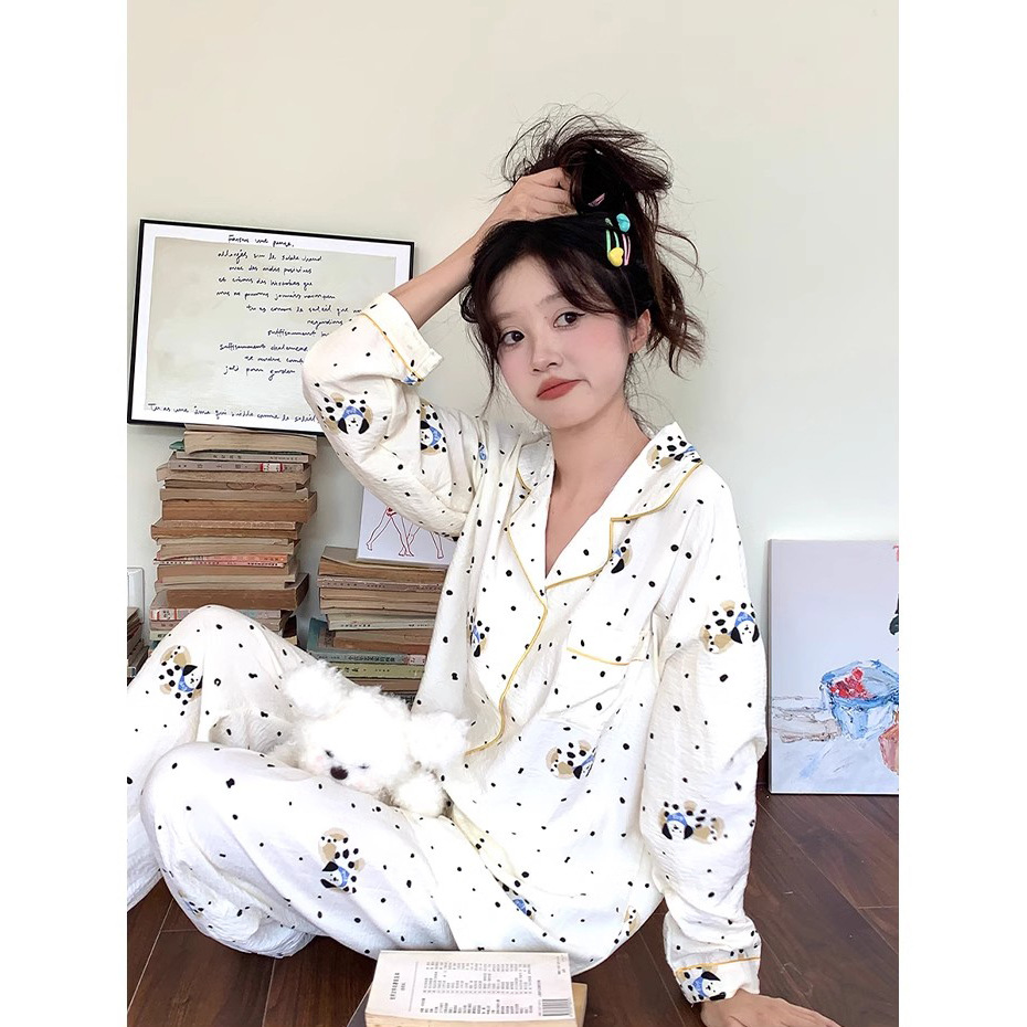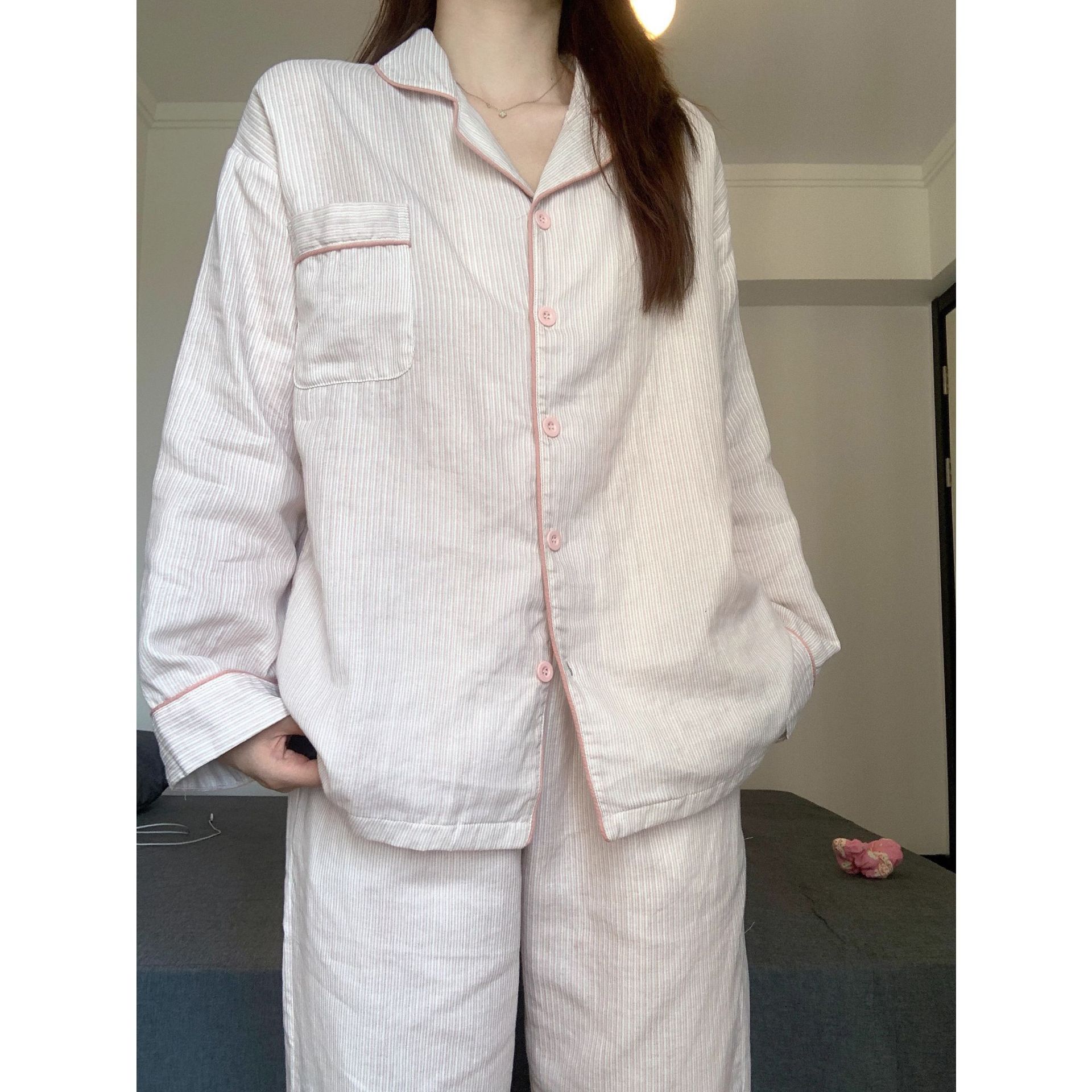 布帛ガーゼパジャマレディース长袖セット春秋学生カーディガンinsホームウェアゆったり可爱い高级感
