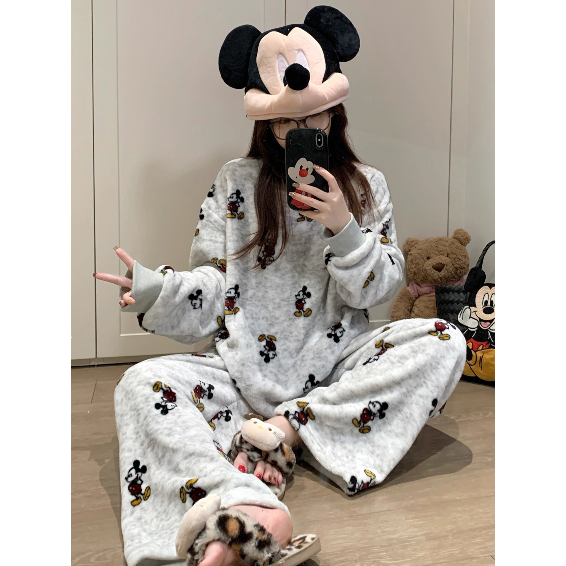 珊瑚绒睡衣女秋冬款加绒加厚休闲套装法兰绒家居服卡通大码可外穿