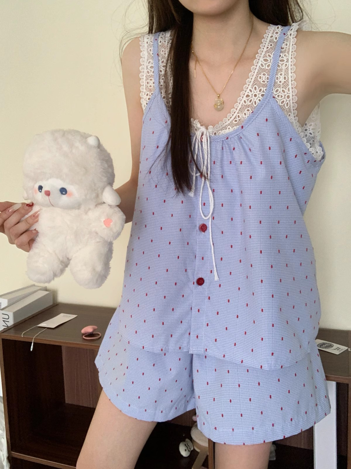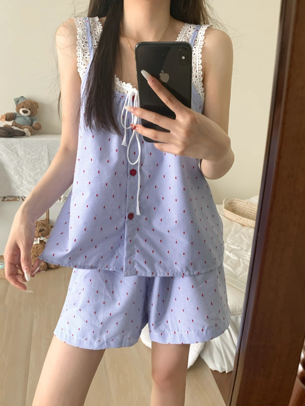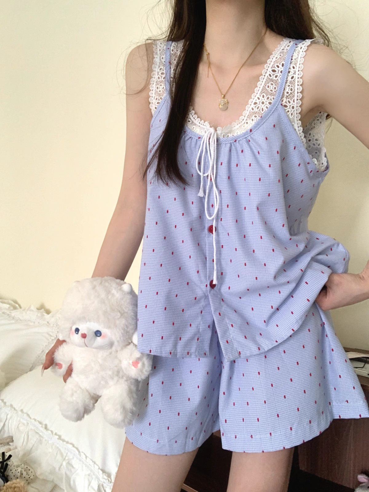 クラウドコットンガーゼキャミソールパジャマレディース夏レースセットアップins越境ホームウェア高级感
