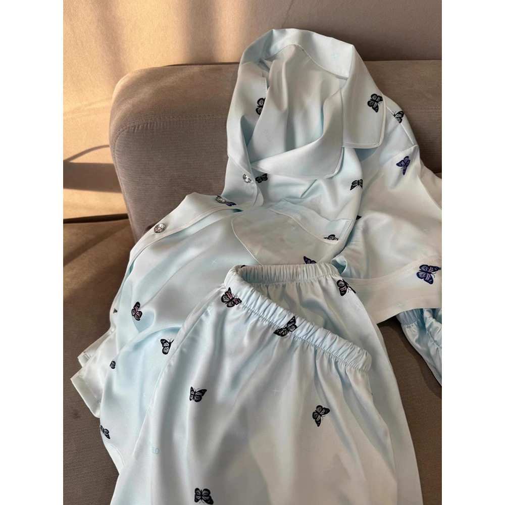 アイスパジャマレディース夏半袖半ズボンセットinsカーディガン高級感クロスボーダールームウェア夏アウター可