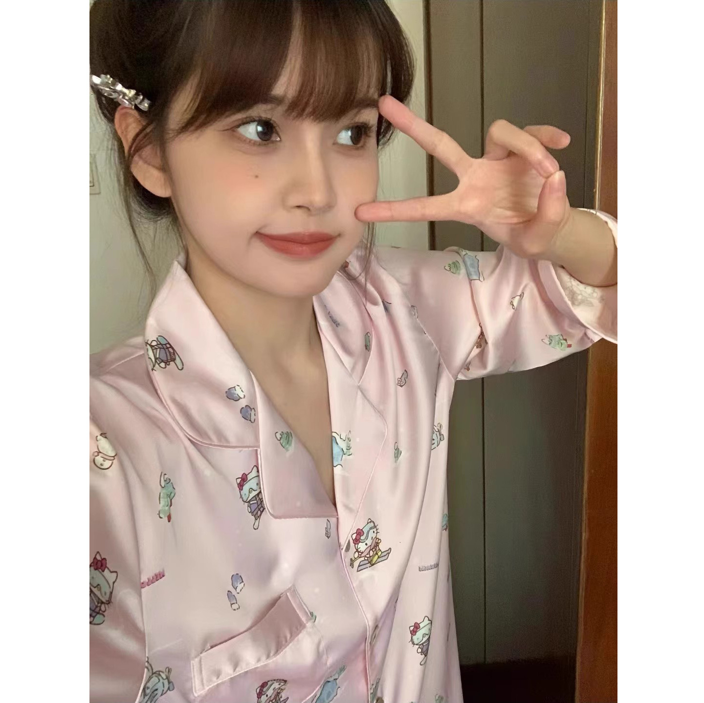国境を越えたパジャマの女性春秋タイプの氷糸長袖ズボンセットアニメかわいいinsネット赤家庭服春秋