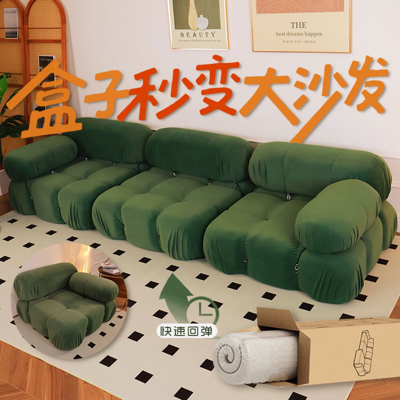 真空圧縮竹節布製ソファ イタリア風ミニマリストリビングルーム 可動式モジュール組み合わせデザイナー異形ソファ