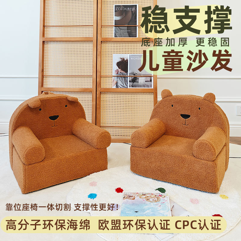 子供用読書ソファ、クリエイティブな子供用テディベア風スポンジソファクッション、レイジーソファ