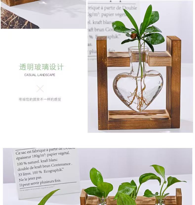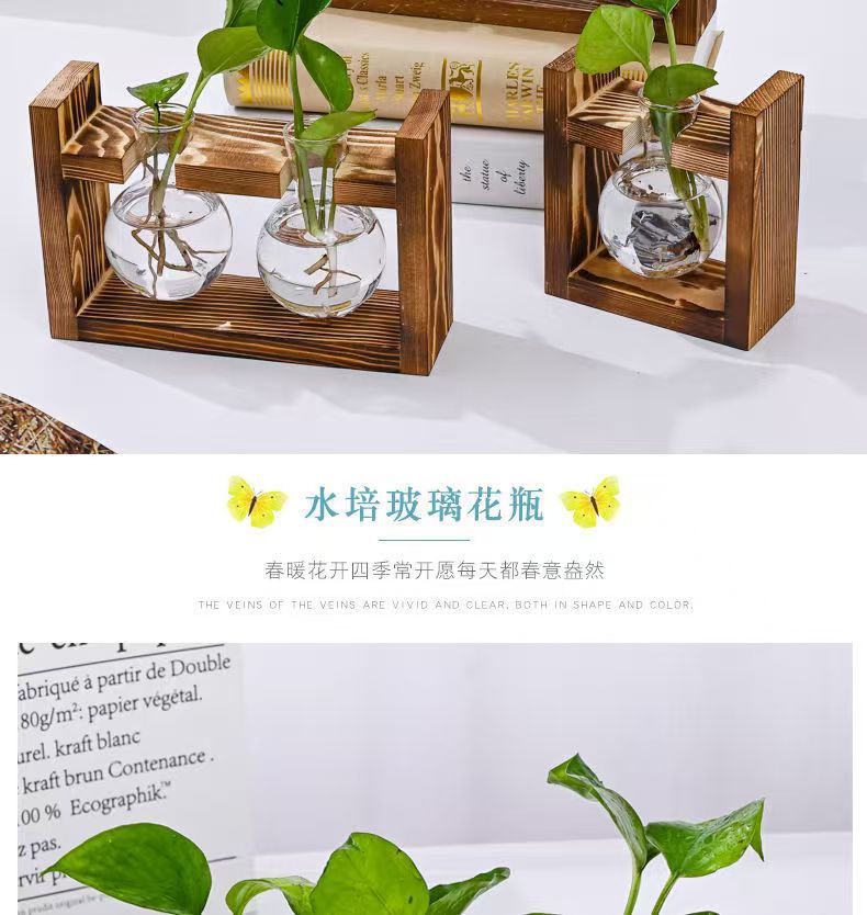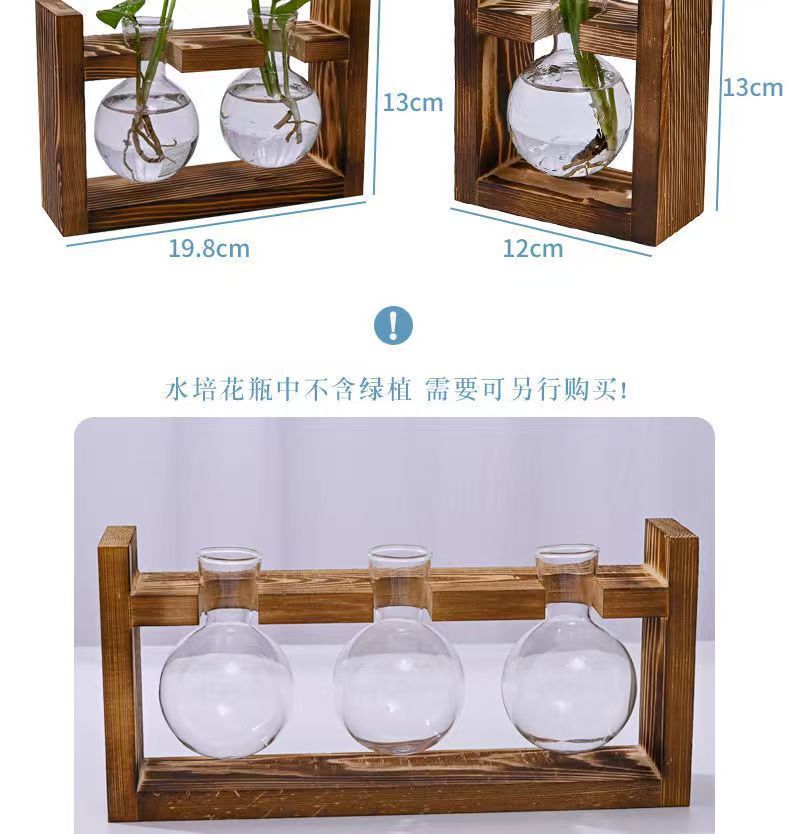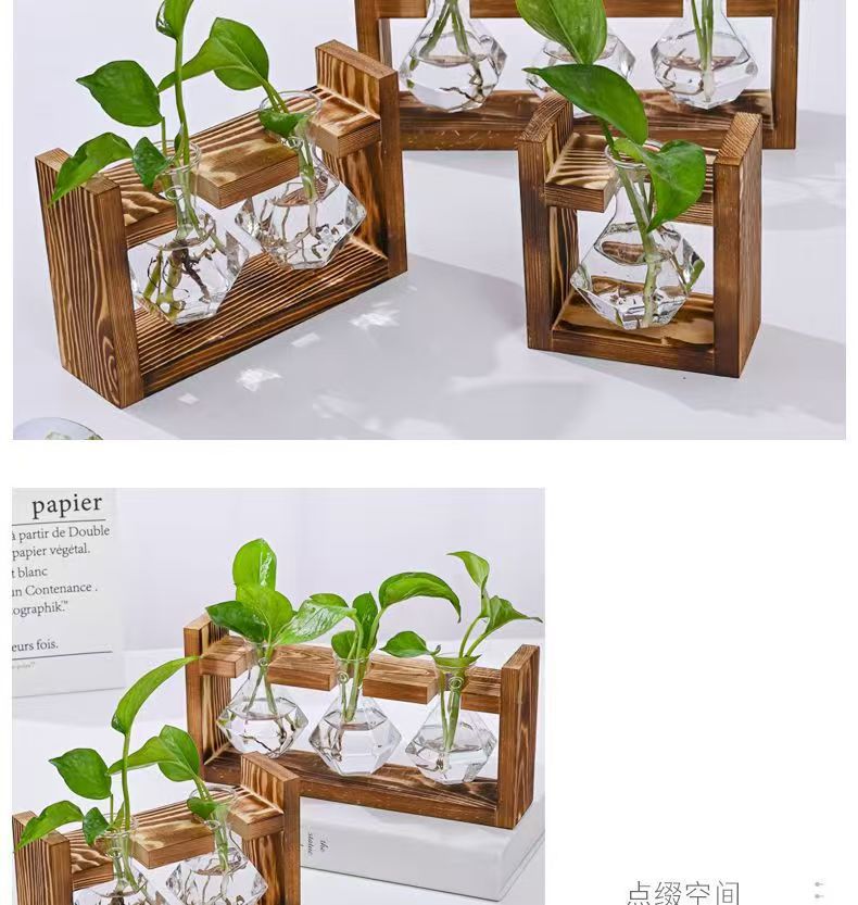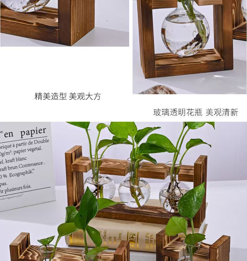 創意木枠水培ガラス花瓶緑羅水養植物花器オフィス園芸デスクトップ装飾