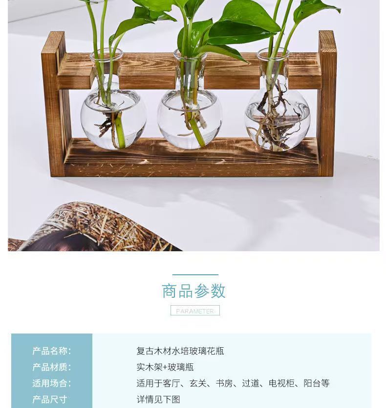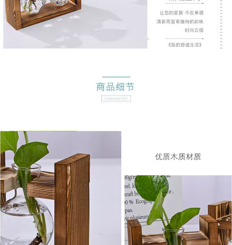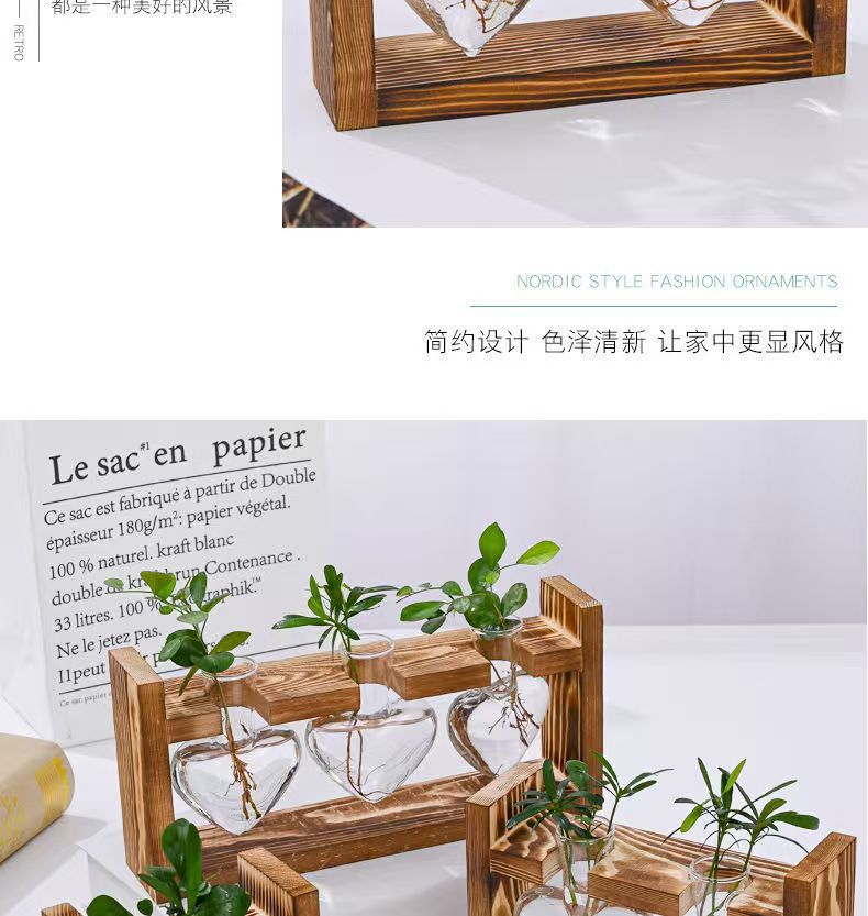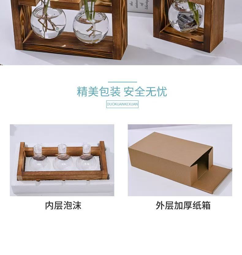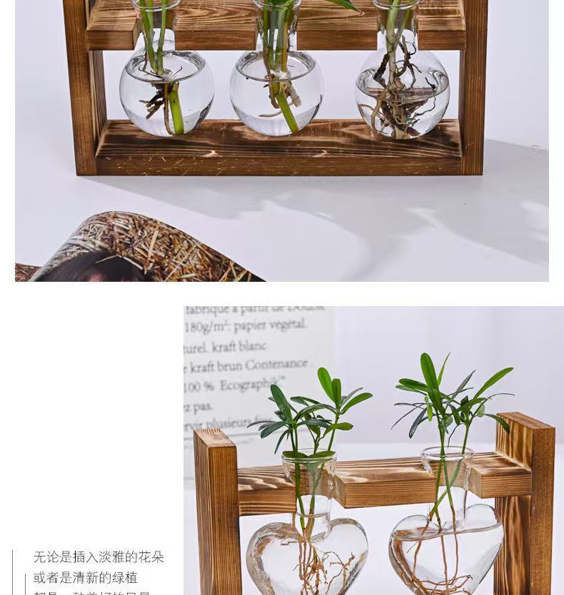 創意木枠水培ガラス花瓶緑羅水養植物花器オフィス園芸デスクトップ装飾