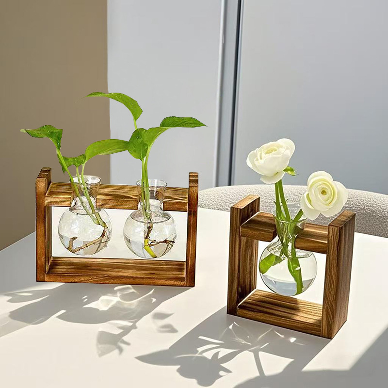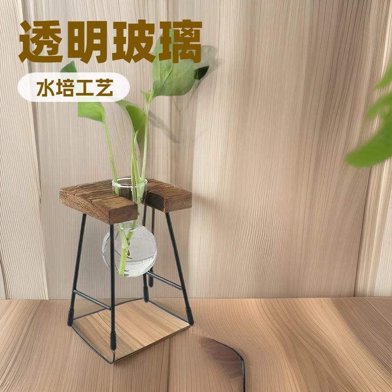 クロスボーダークリエイティブ水耕木製棚花瓶モダンなミニマリストのリビングルームの装飾透明な装飾品デスクトップ水栽培ポトスフラワーデバイス