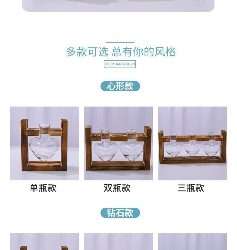 創意水培植物透明木架花瓶デスクトップ小清新容器客間現代装飾品置物ペンダント