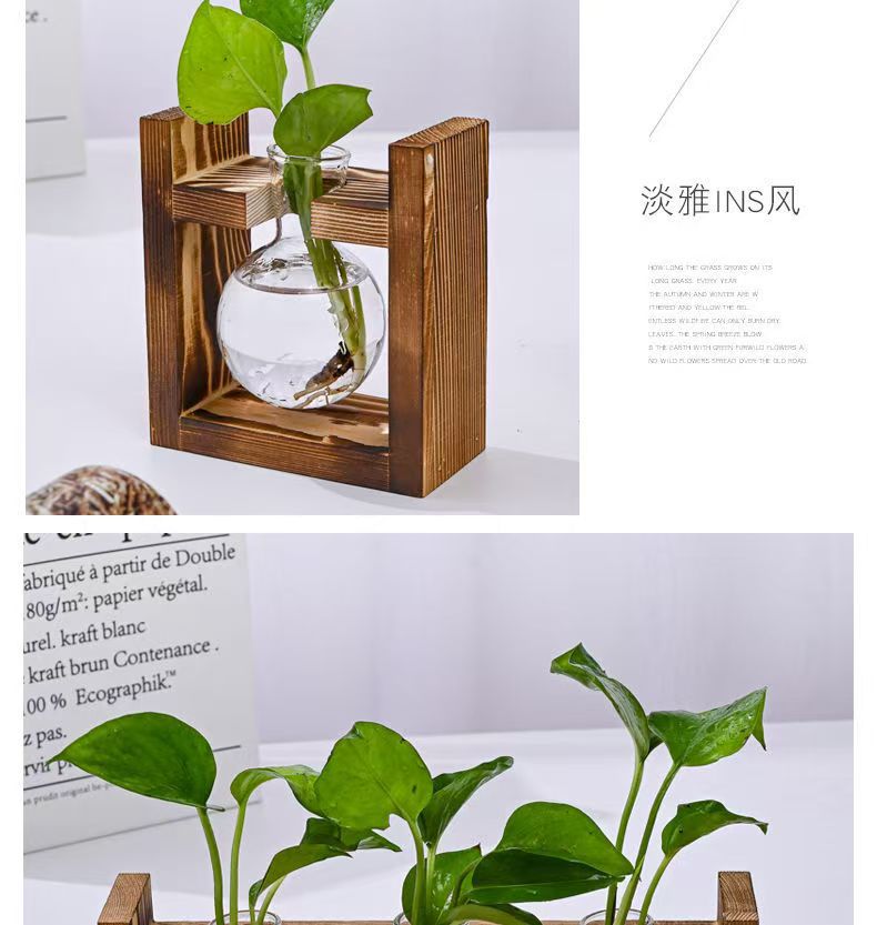 クリエイティブ木枠水培小花瓶ins緑羅植物ガラス瓶容器居間オフィスデスクトップ置物