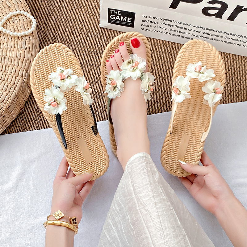 花朵人字拖女夏季外穿2025新款海边沙滩度假仙女风拖鞋防滑可湿水