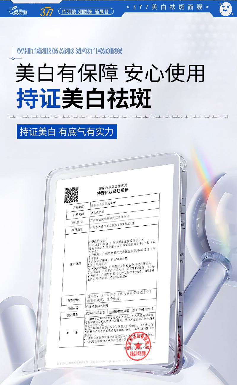 377紧致美白淡斑祛黄美白保湿面膜改善暗沉淡化色斑嫩肤提亮肤色