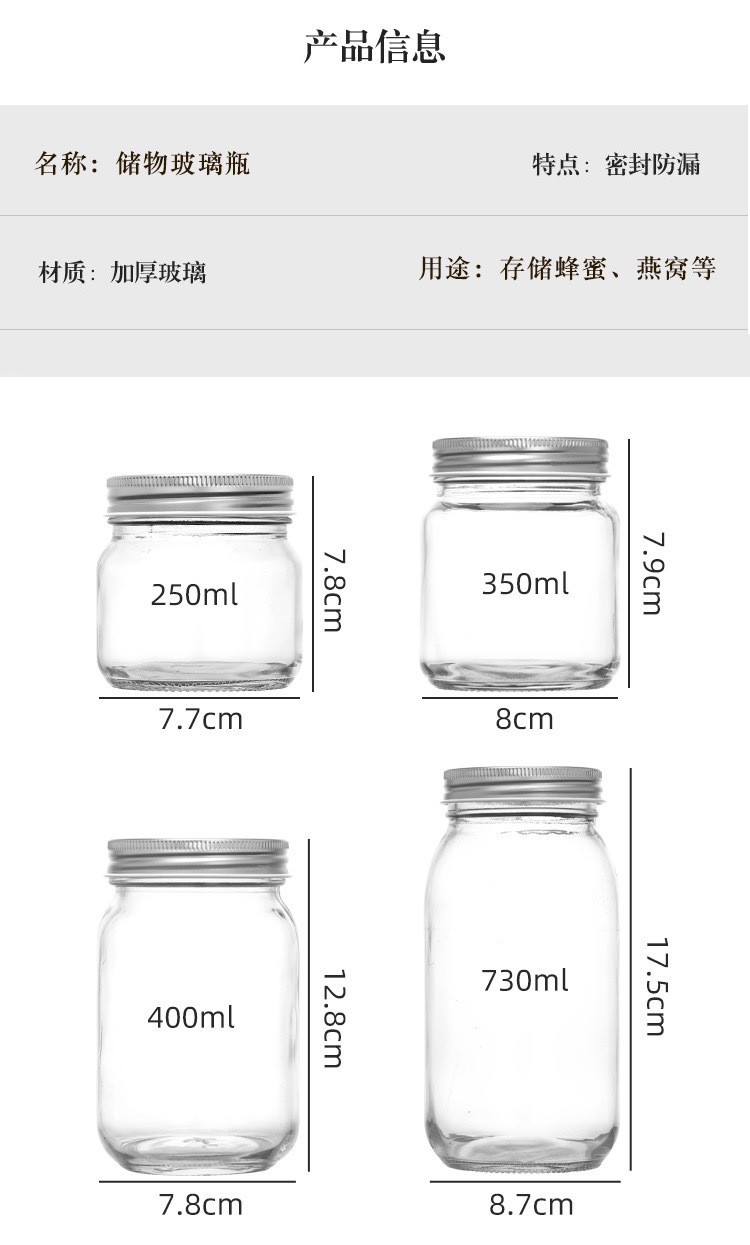 现货耐高温鲜炖燕窝鱼胶花胶玻璃瓶子分装瓶蜂蜜罐头酱菜密封罐