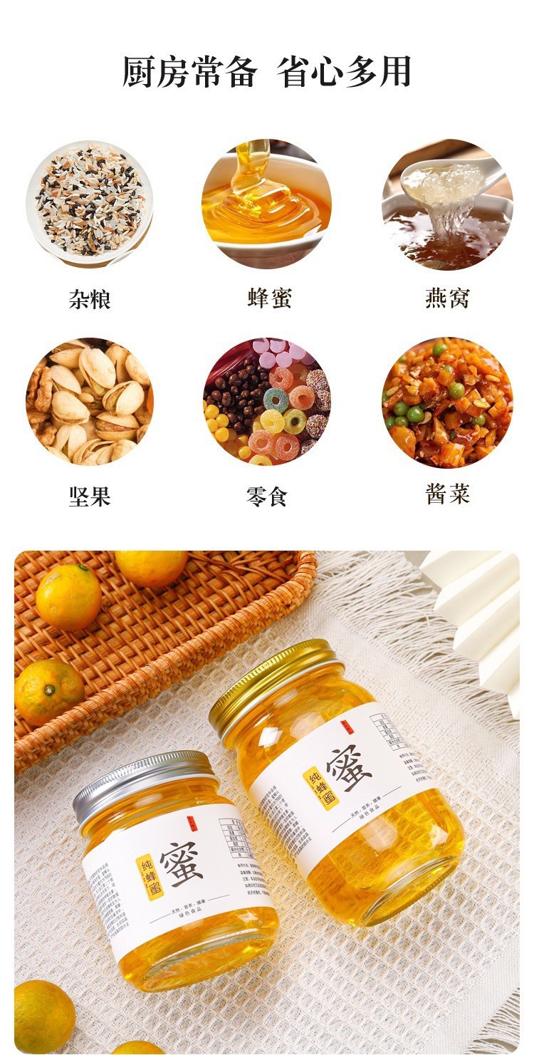 食品密封储物蜂蜜酱菜方形柠檬膏透明玻璃瓶耐高温加厚厨房收纳杂