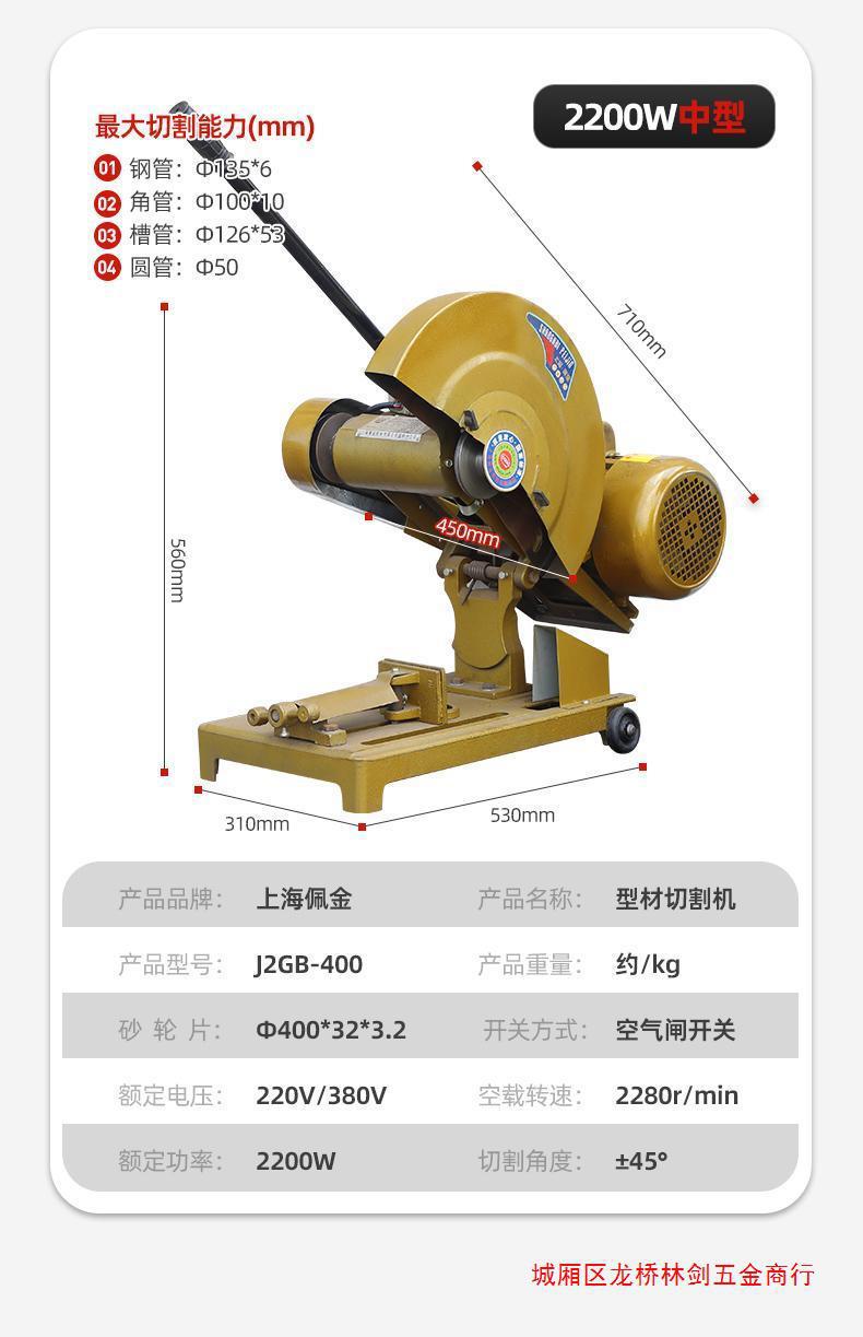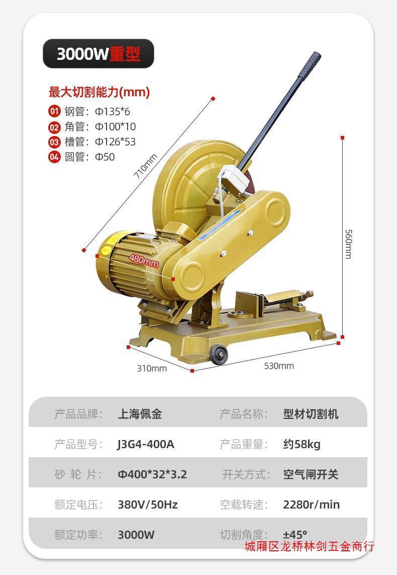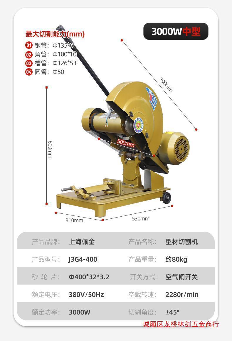 上海佩金400型全銅線鋼材木材形材工業重切断機三相/2.2kw/3kw