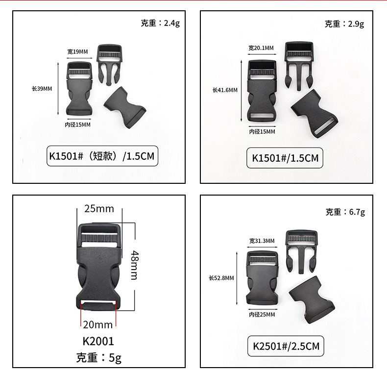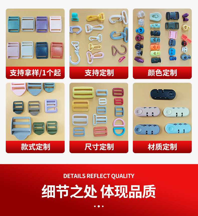 メーカー既製バッグ、日本製バックル、3段階調整バックル、バックルバックル、マルチ仕様、マルチカラープラスチックバックル卸売