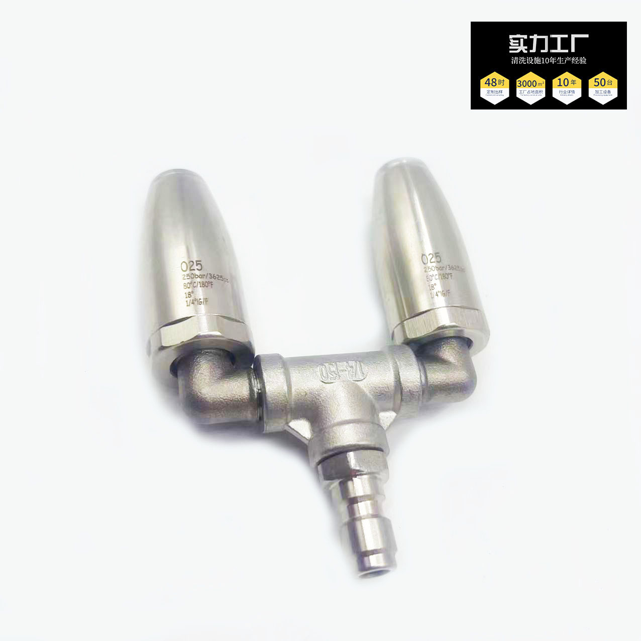 クロスボーダーダブルヘッドロータスヘッド三方360度回転高圧1/4強力ステンレスダブルターボノズル