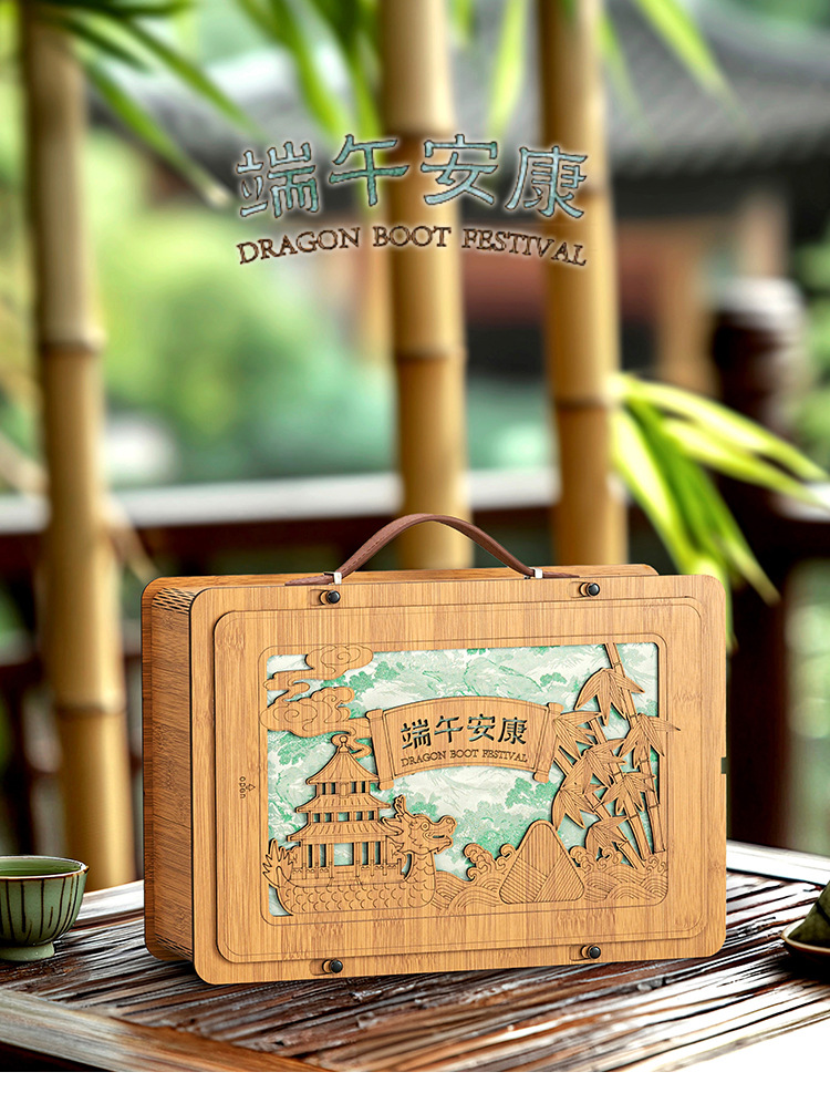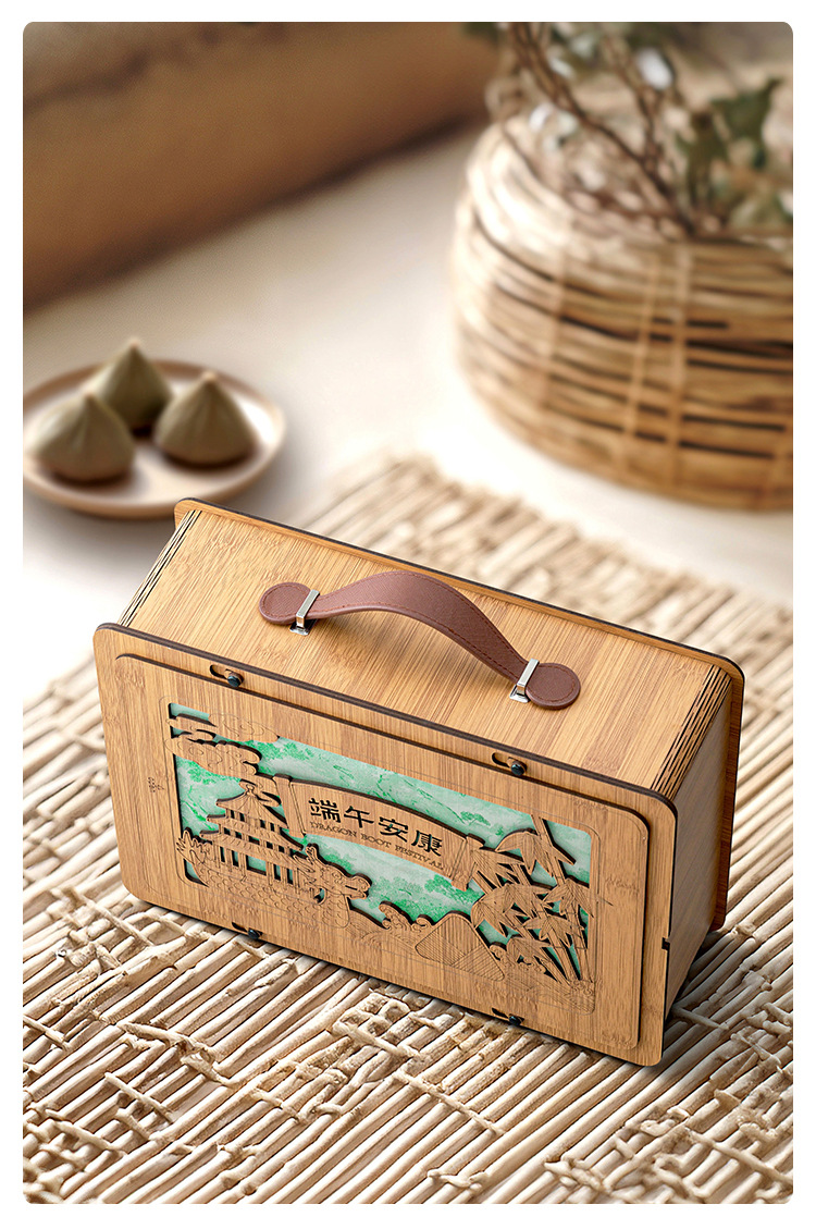 2025端午の節句の礼箱ちまきの包装箱の創意は竹のつづりの箱の手提げの贈り物の空の箱をまねてLOGOを決めます。