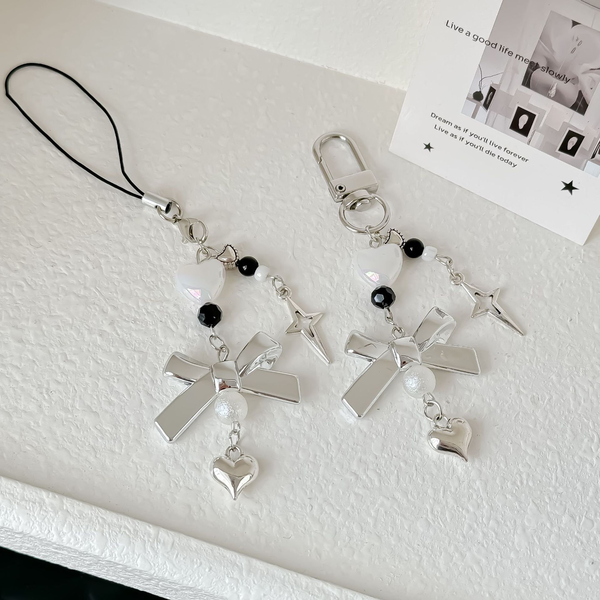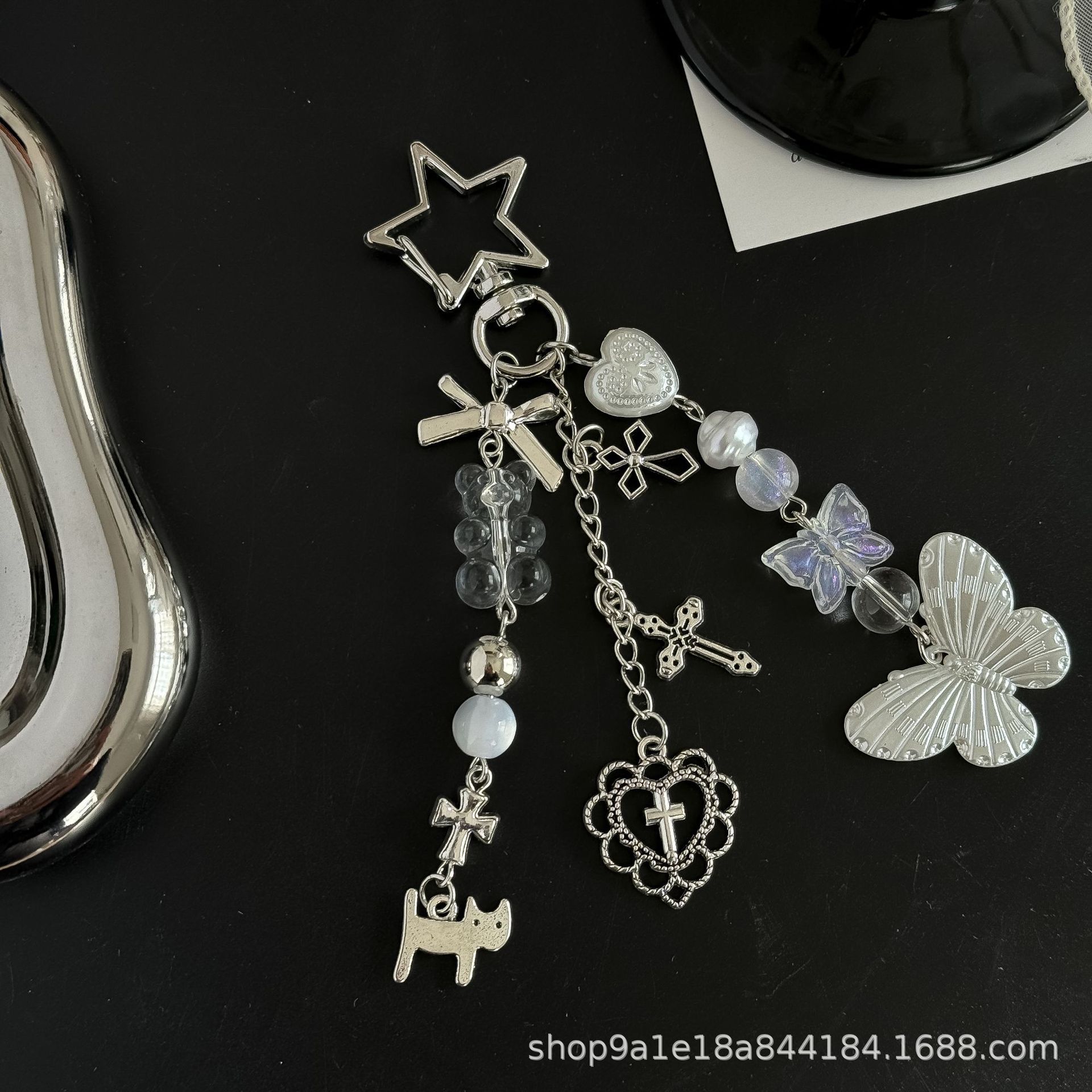 Y2kミレニアム風蝶バッグストラップ個性的なストラップ熊クロスビーズペンダントキーホルダー