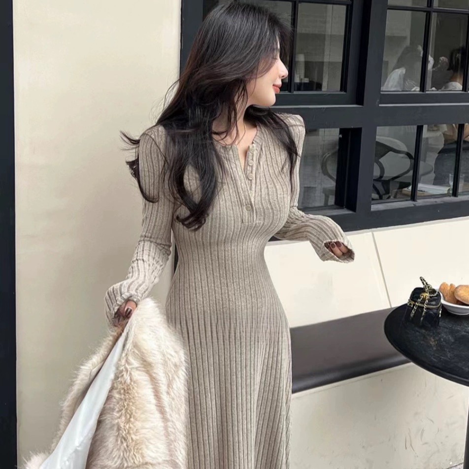 2025年春の流行商品、美神が降り注ぐ、個性的なデザインのスリムフィットでスリム効果のある、甘くてクールな起毛ワンピース