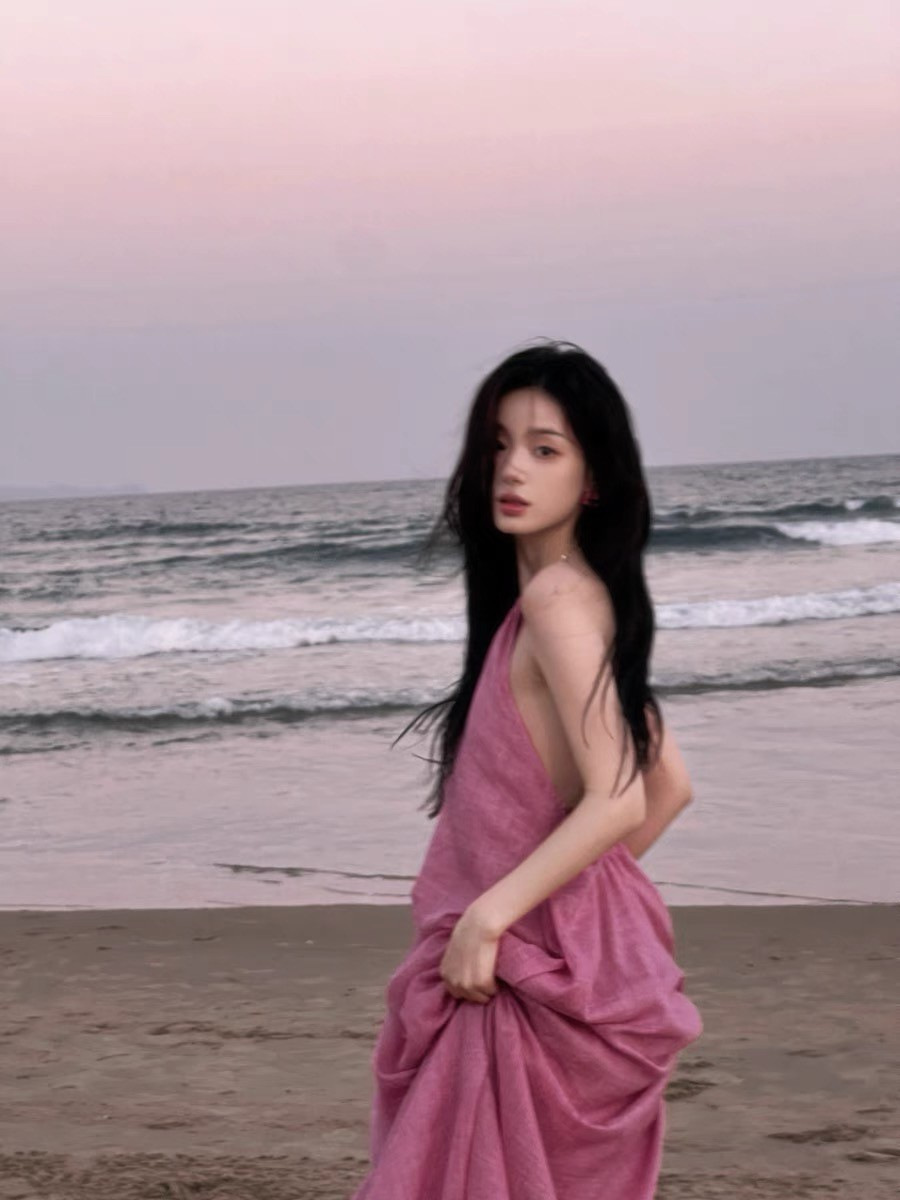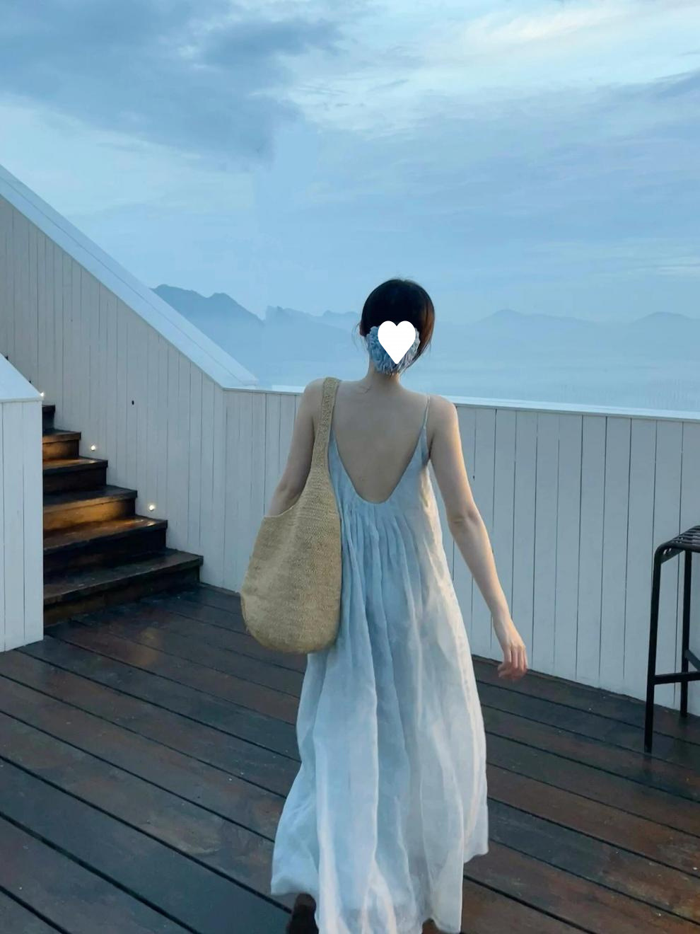フランス三亜海辺休暇露背ビーチスカート雲南タイ旅行写真超仙首ストラップワンピース