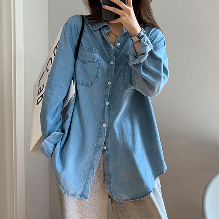 レトロ香港スタイルデニムシャツ女性のための 2025 ジャケットルーズデザインニッチトップポロ襟秋シャツ女性のための