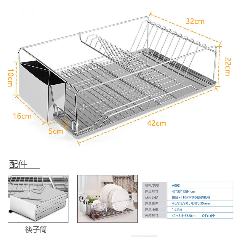 食器や食器用の二層床置き排水ボウルラックキャビネット、小さなカウンタートップのボウル、箸、プレートの収納ラック