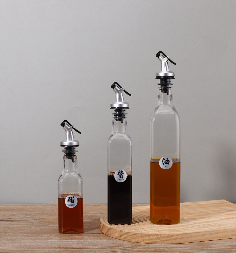 アクリル製角型調味料ボトル、漏れ防止キッチン用オイルボトル、オイルタンク、ごま油、醤油、酢ボトル、調味料ボトル、オイルボトル