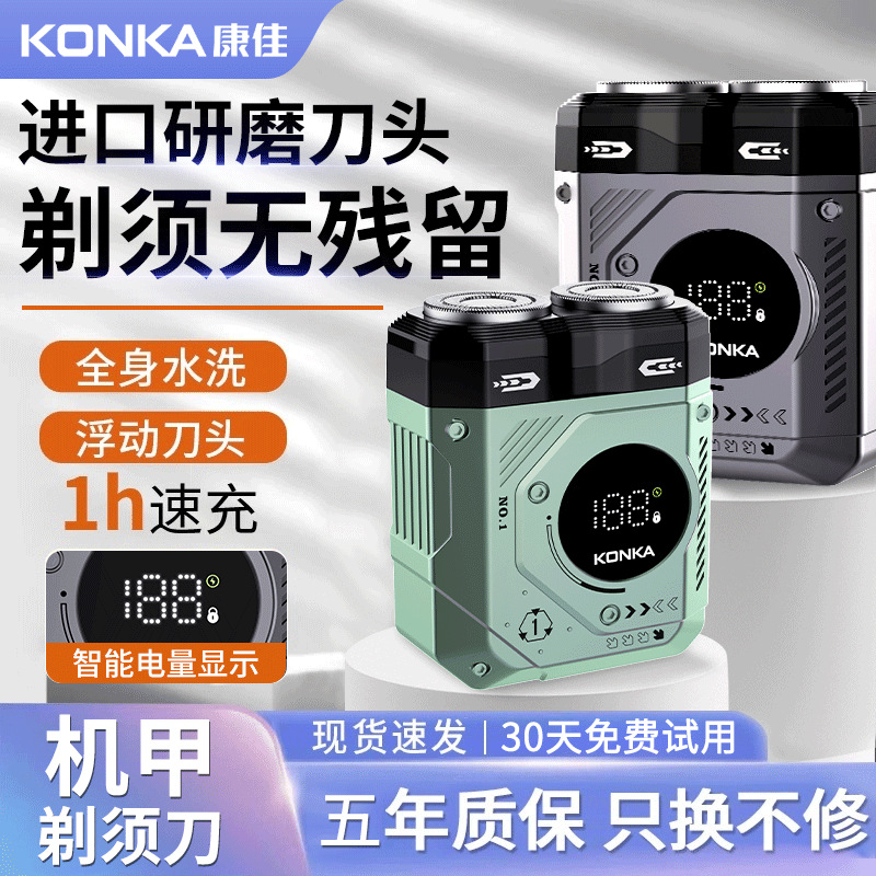 康佳電気髭剃りメンズ全自動充電式デジタル表示ひげ剃りハイパワー水洗い可能髭剃り