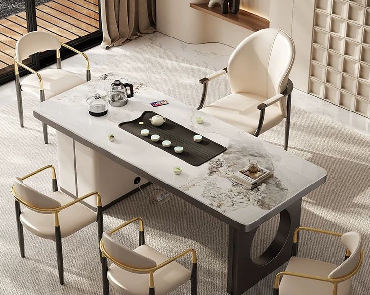 バルコニー用岩板茶台、茶テーブルと椅子のセット、リビングルーム用ティーテーブル、モダンなダイニングテーブル、シンプルなオフィス用茶水キャビネット、収納家具