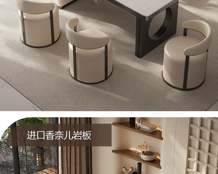 イタリア式高級感岩板食卓と椅子の組み合わせ長方形天然超晶石軽豪華シンプル豪華石西食卓