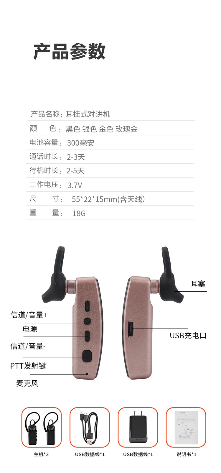 ワイヤレスミニトランシーバー Bluetooth イヤーフック小型機小型美容室、レストラン、ホテル、レストラン専用