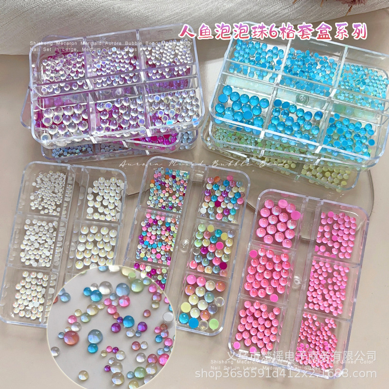 国境を越えて爆発した人魚泡珠ネイルアクセサリー半円平底極光幻彩マカロンキャンディー色爪ドリル