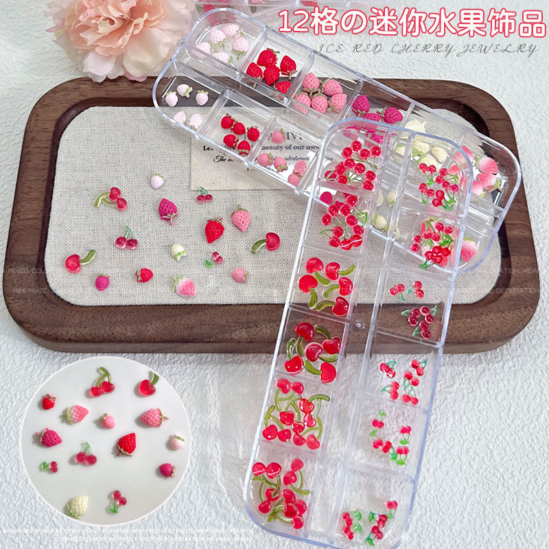 模擬フルーツチェリーマニキュアジュエリーサイズ混合セット立体ピンクイチゴウェアラブルネイルネイルアクセサリー
