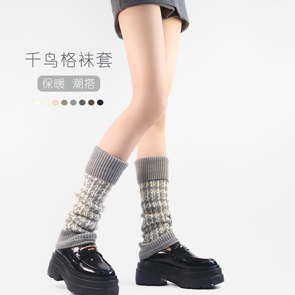 ウールソックス、春と秋の千鳥格子ファッションパイル暖かいレッグカバーニッチ痩身韓国ふくらはぎソックス