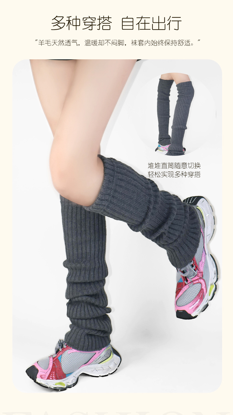 ウールソックス春と秋のロング縦ストリップロリータy2k無地秋冬jkパイルヨガパンツ暖かいレッグカバー