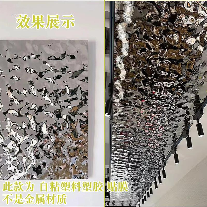 模造金属ステンレス鋼シルバー水の波紋自己粘着プラスチック装飾結婚式の背景壁紙レストランホテル装飾フィルム