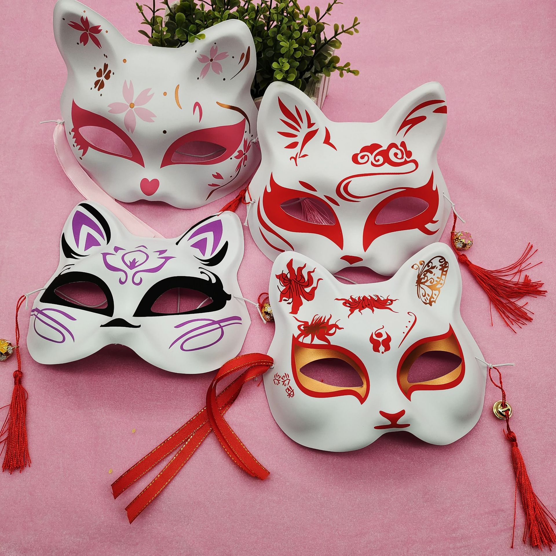 ディザトーン同型ネット赤猫マスク彩色絵半顔狐和風アニメ半顔猫マスク熱売玩具