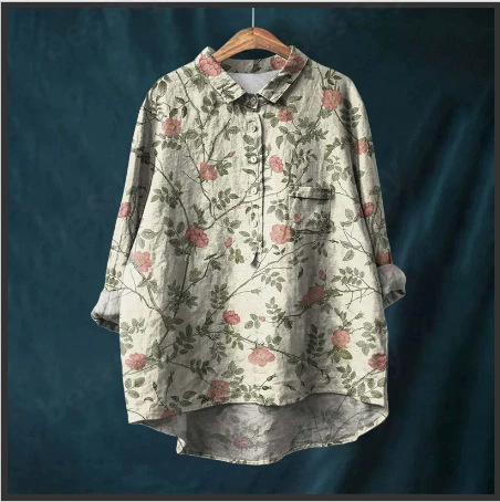 2025春の新型長袖POLO襟シャツゆったりとした外着植物3dデジタルプリントの甘い上着WG18