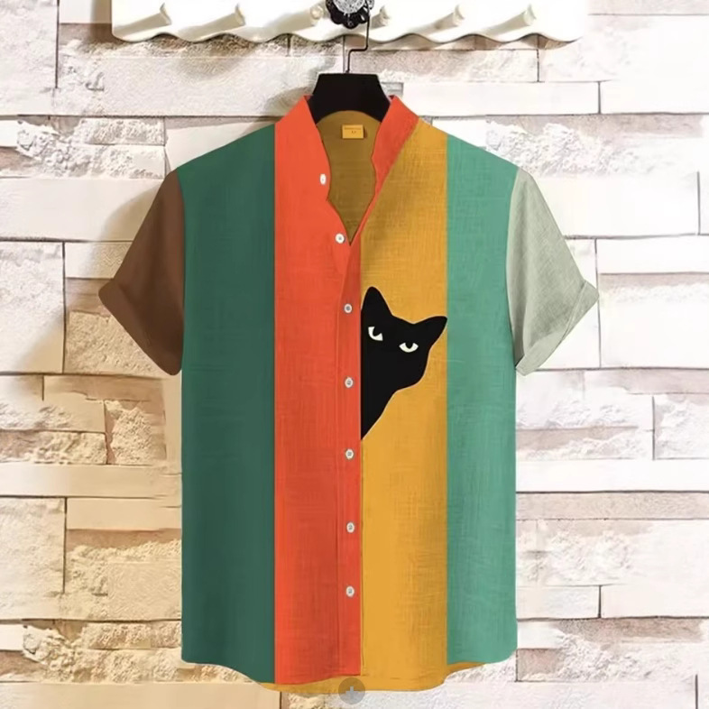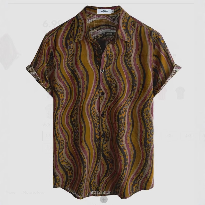 欧美跨境新品男士短袖衬衫3D数码印花短袖衬衫夏威夷海滩衬衫