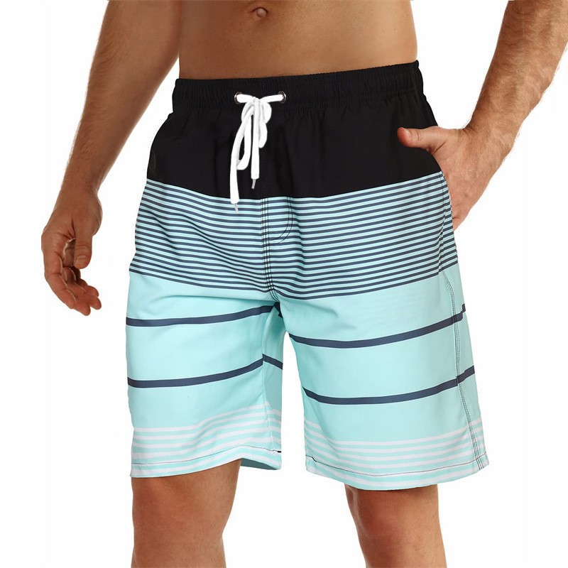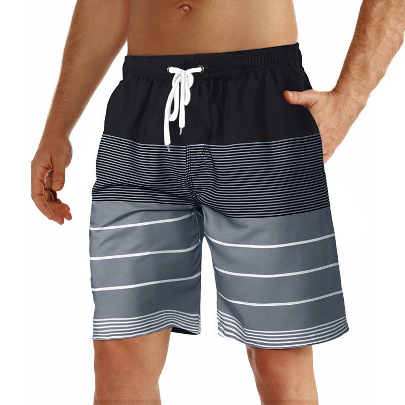 跨境条纹沙滩裤速干宽松欧码短裤可下水冲浪5分裤条纹泡泡纱面料