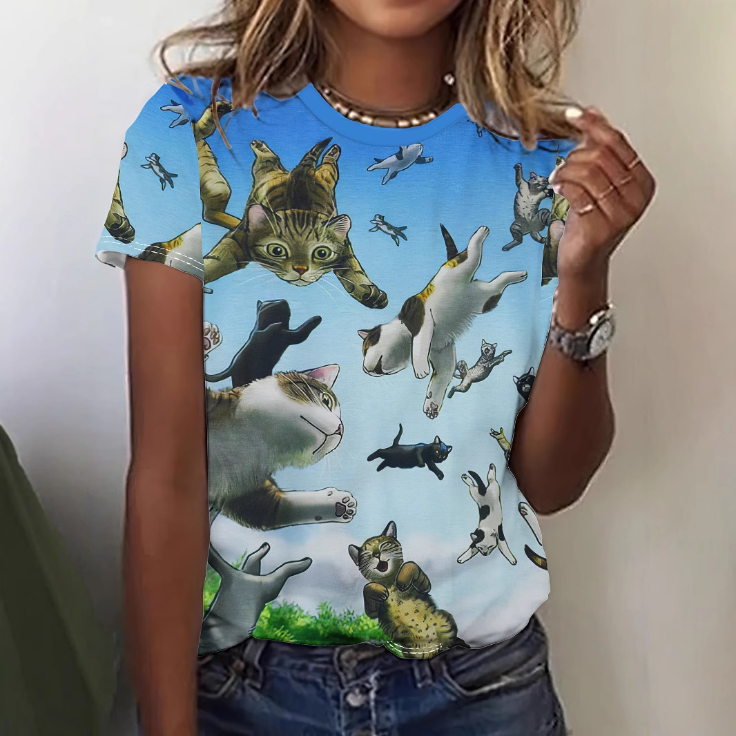 2025夏の源メーカーの街頭の潮流が国境を越えた女性のカジュアルなスポーツ風3dプリント半袖tシャツ