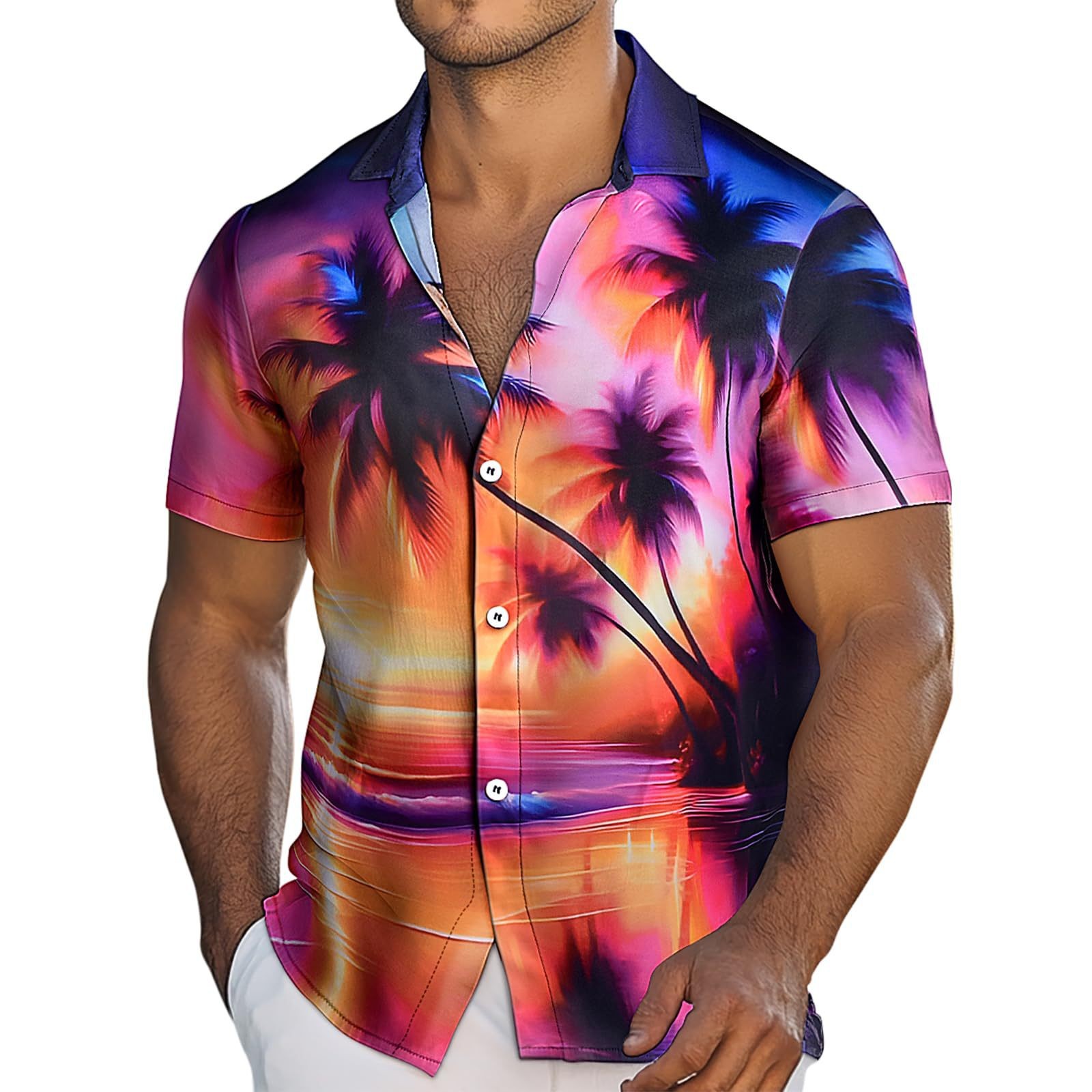夏速売通ハワイ男性半袖シャツヤシの木3dプリント襟カジュアルゆるいカーディガン卸売り