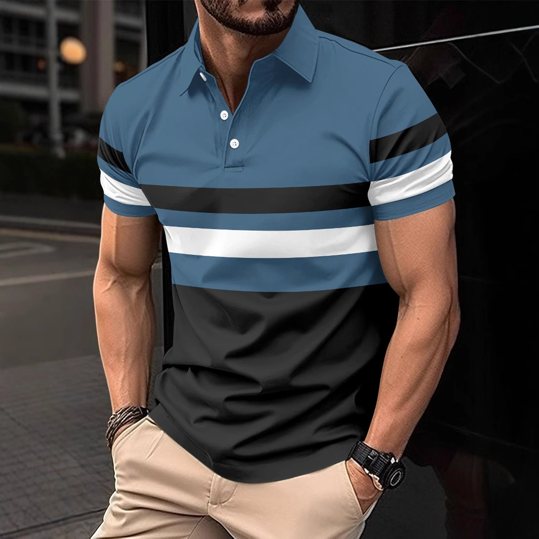 ヨーロッパとアメリカの国境を越えた 2024 夏の速い販売アマゾン ポロシャツ ストライプ メンズ スポーツ ポロシャツ トップ