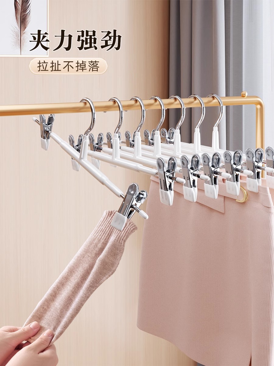 強力2024ズボンハンガークリップハンガーズボン専用家庭用無痕ハンガーステンレススカート干し