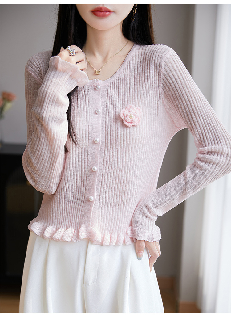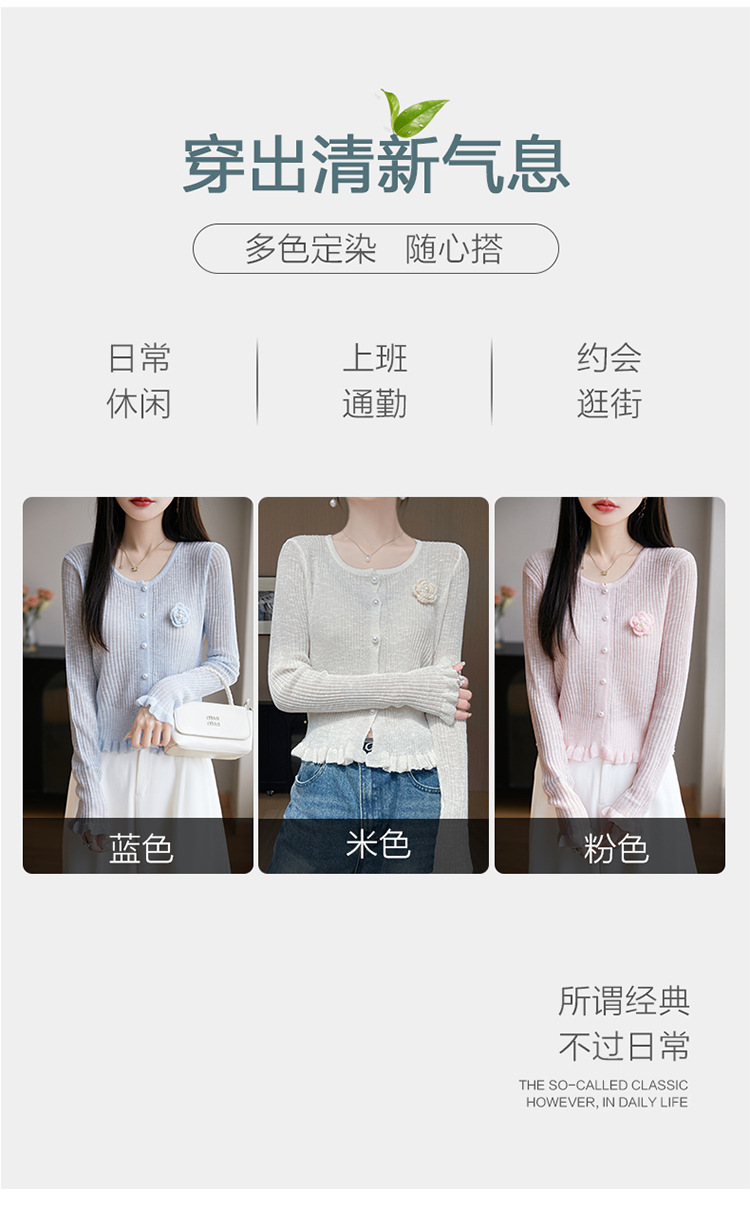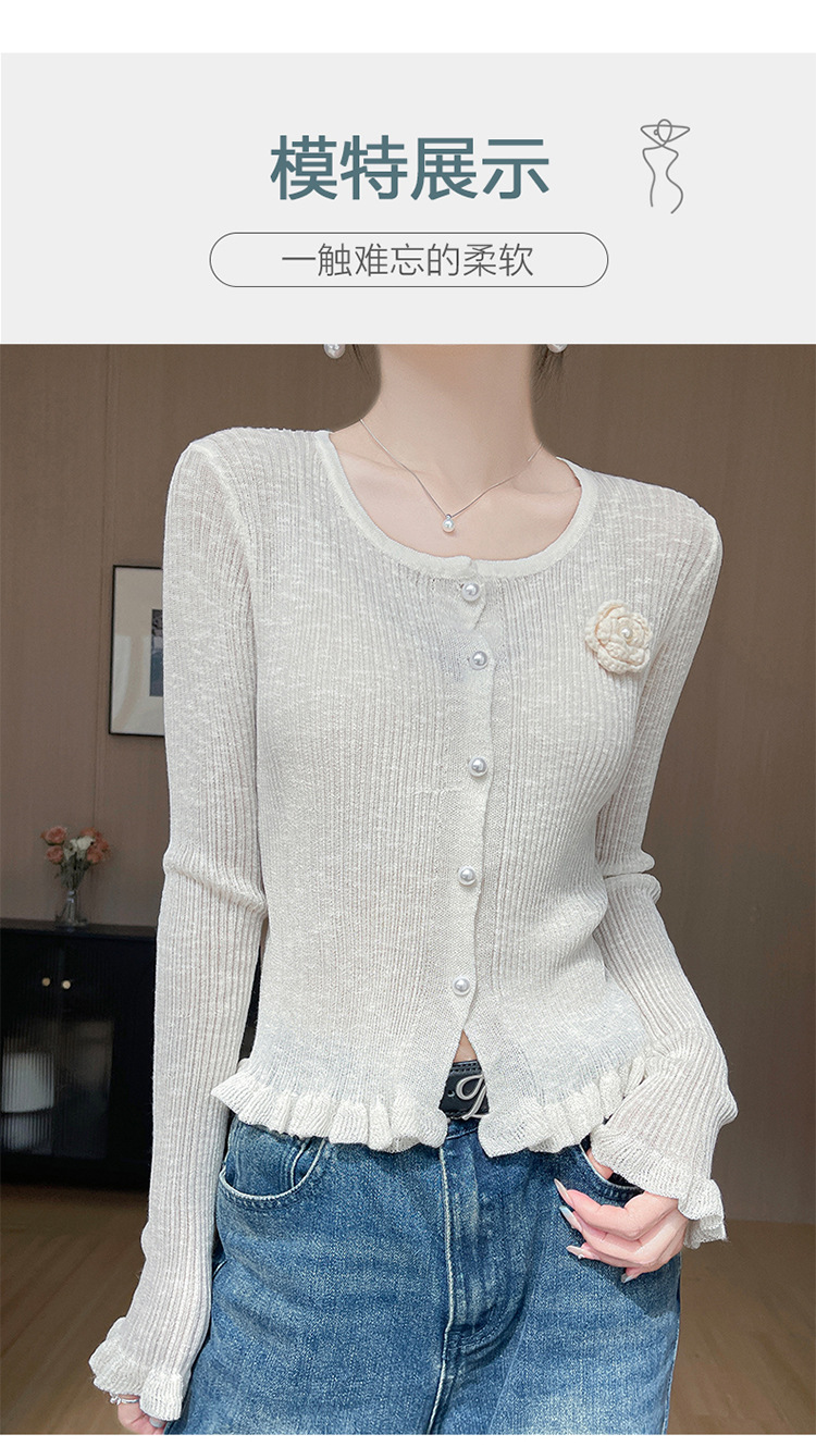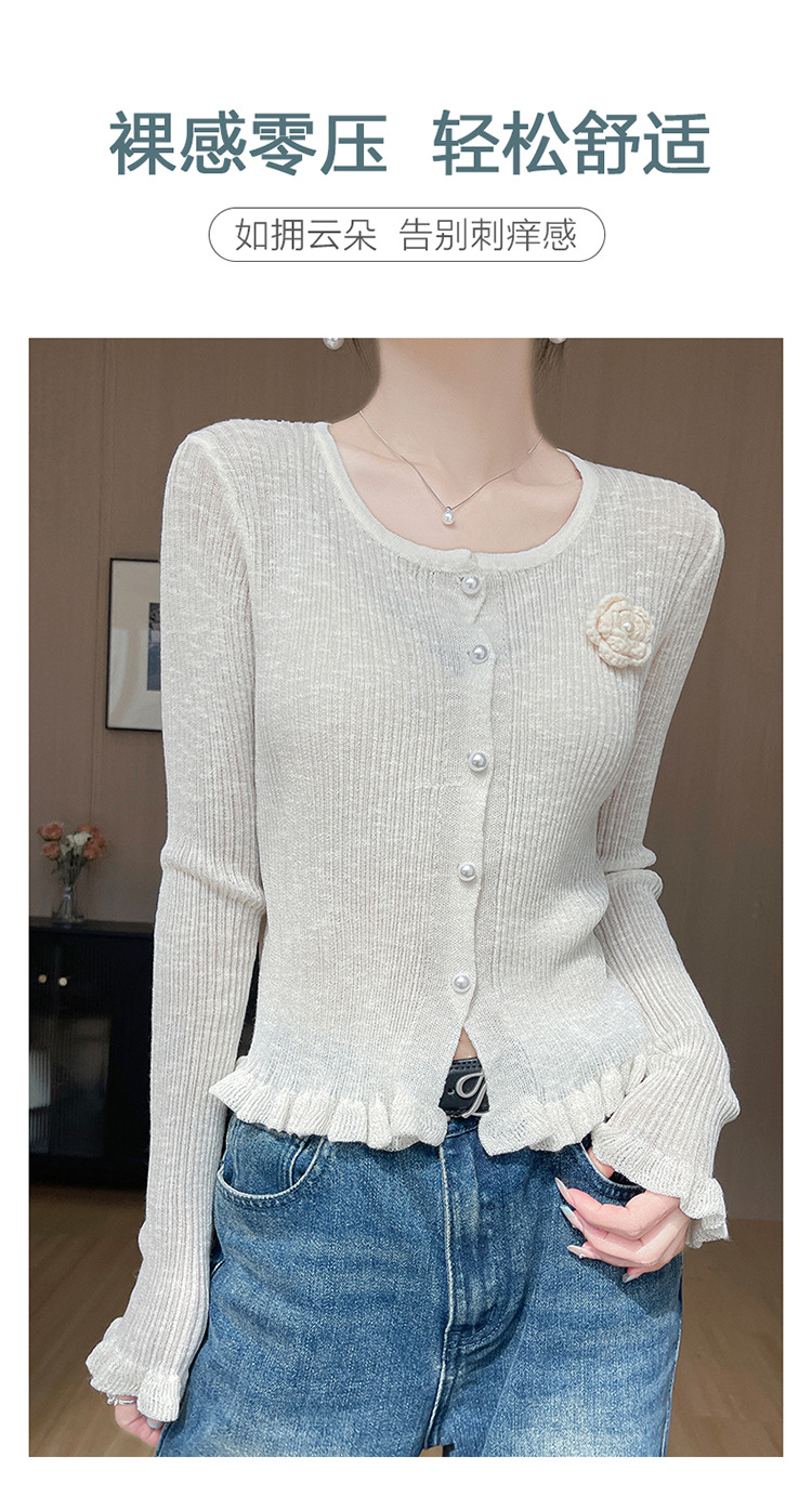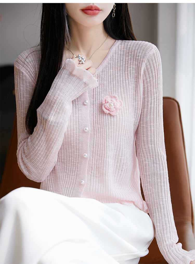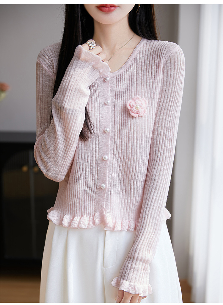 2025年初春新作 優しいスタイル 着痩せショートトップ 耳付き立体フラワー 薄手ニットVネックカーディガン