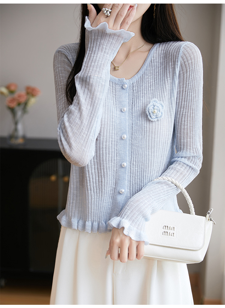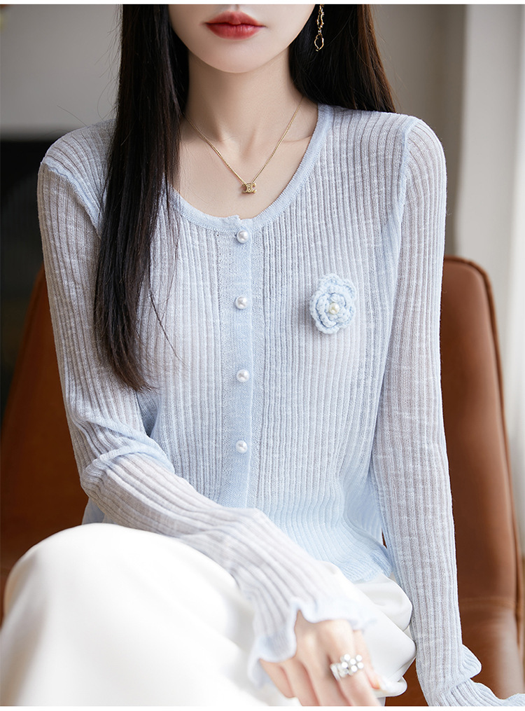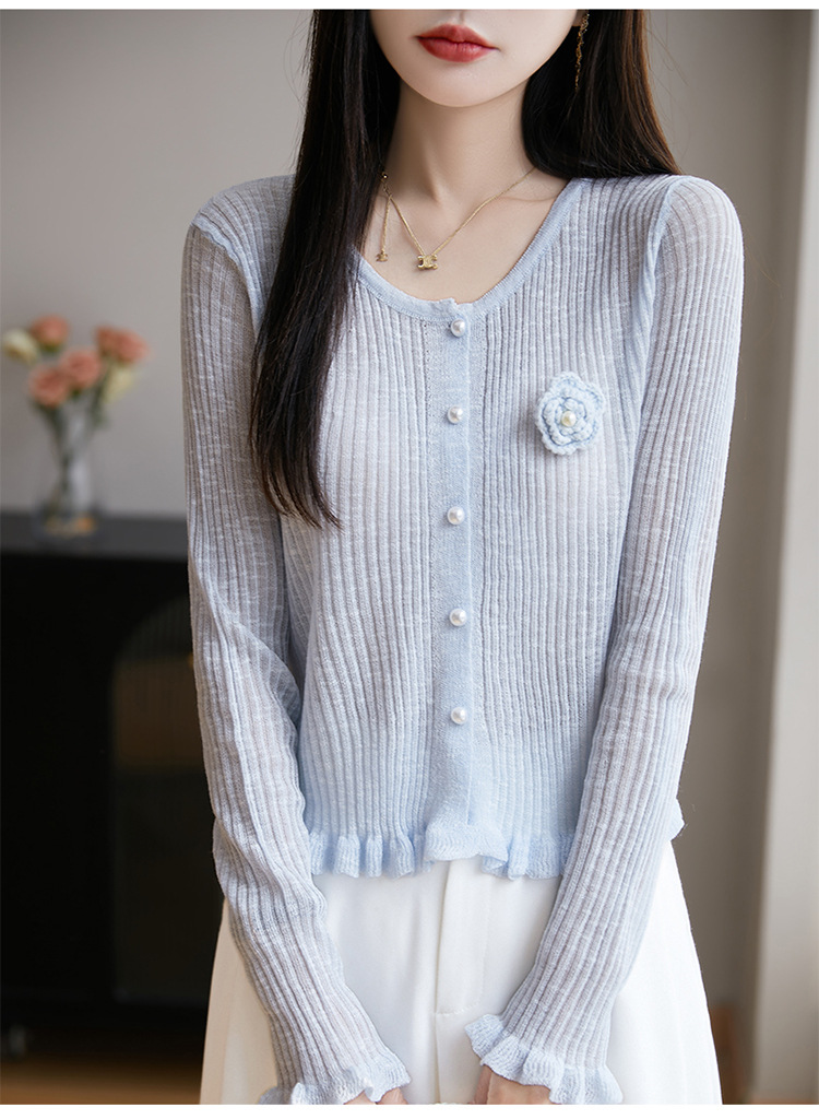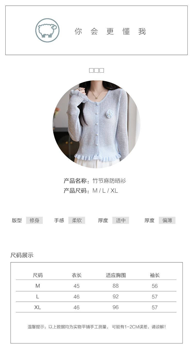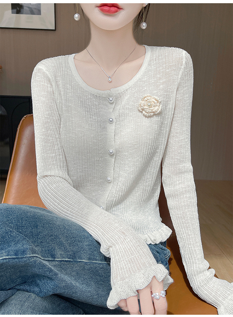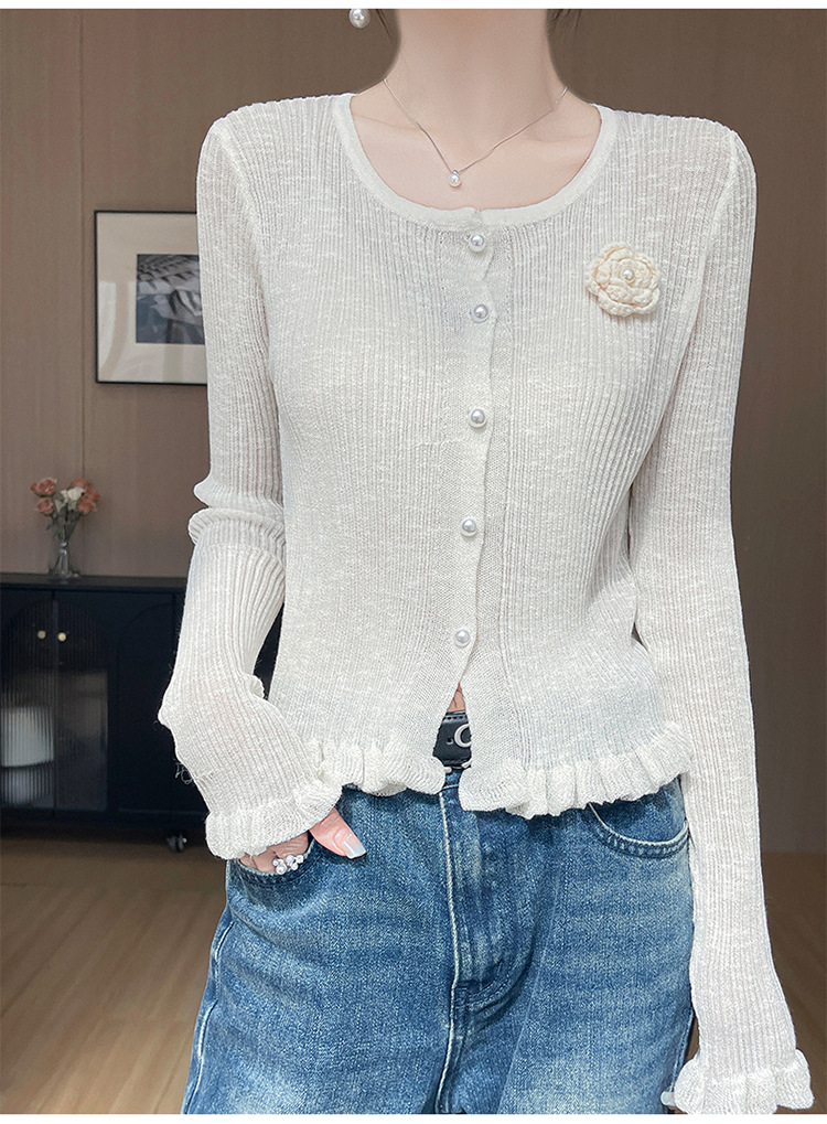 2025年初春新作 優しいスタイル 着痩せショートトップ 耳付き立体フラワー 薄手ニットVネックカーディガン