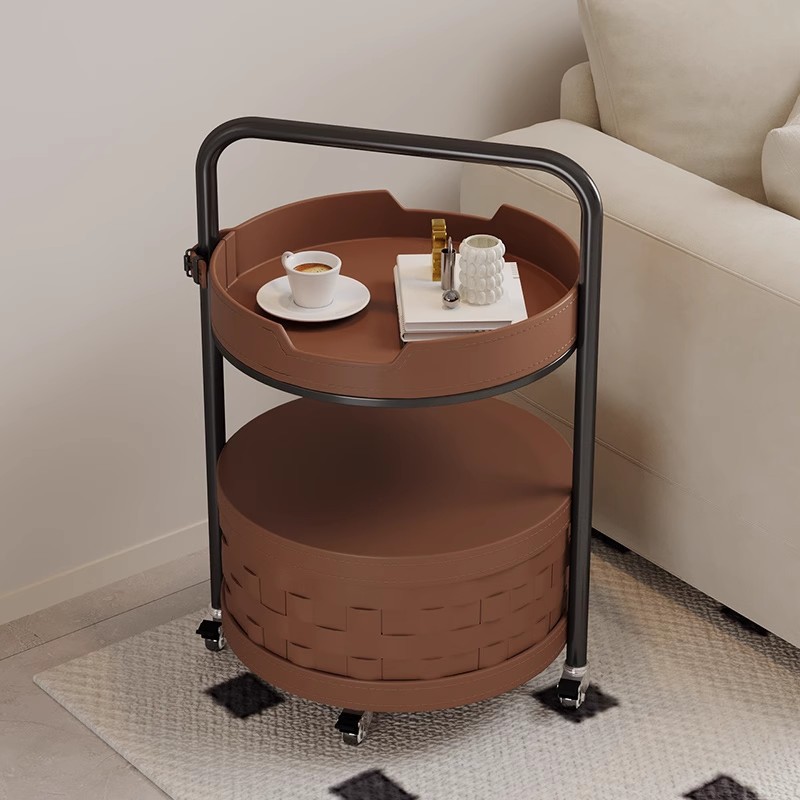軽量高級サドルレザートロリー、スナックラック、高価値ソファサイド、佛山家庭用可動車輪付きコーヒーテーブル