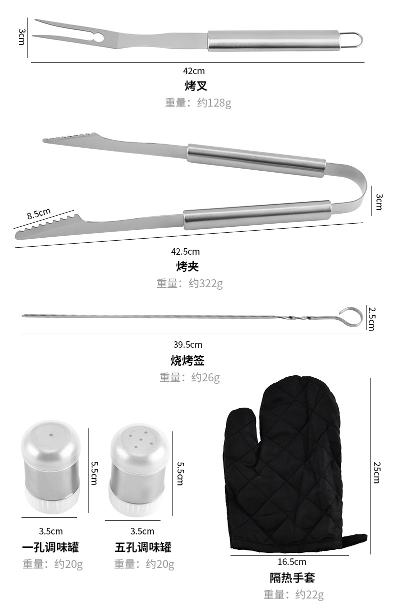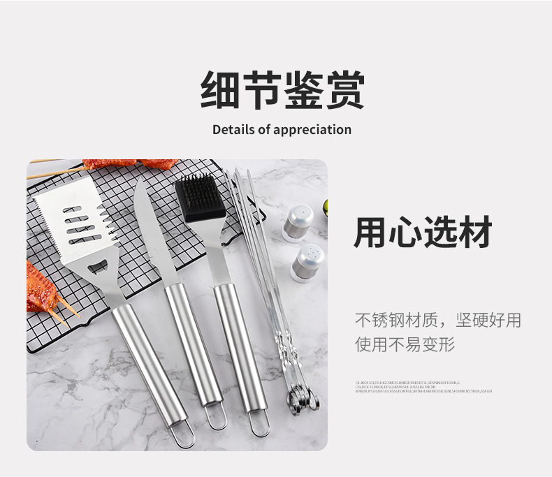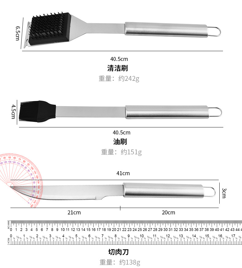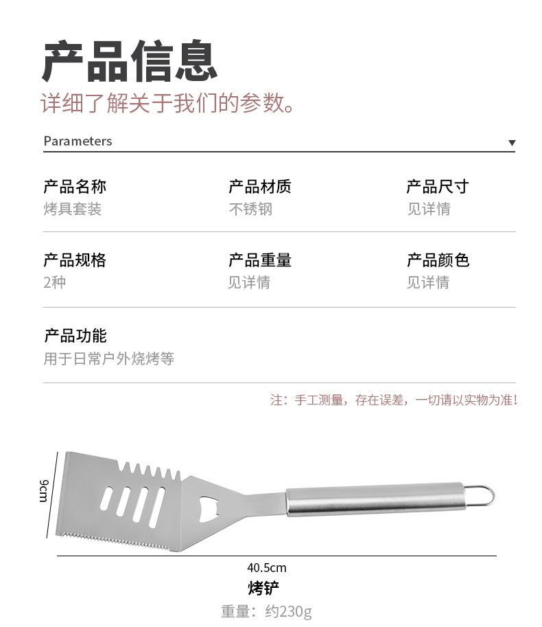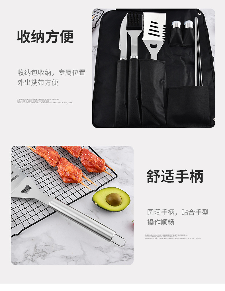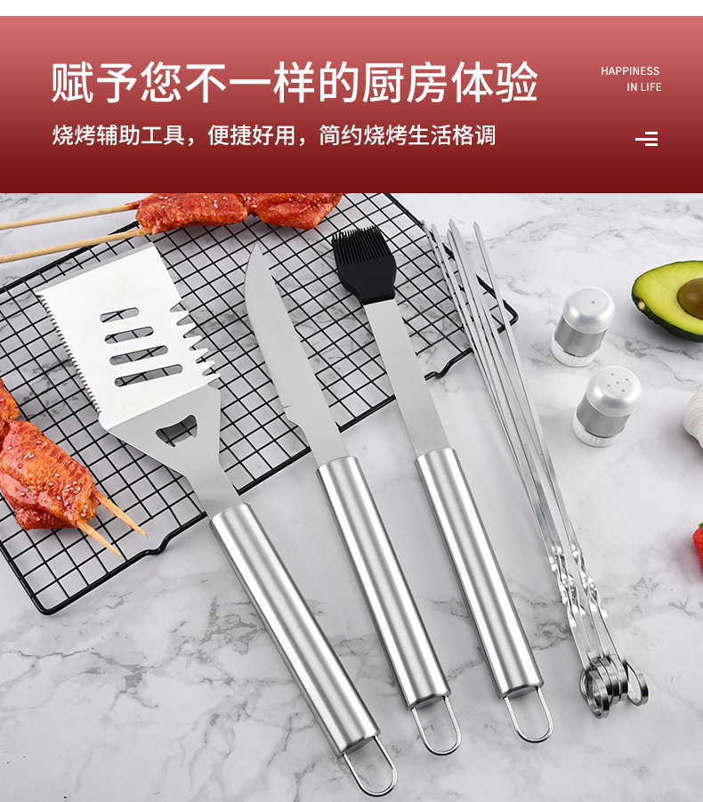 厂家直供不锈钢烤具铲叉夹组合三件套BBQ野营户外家庭聚餐烧烤具