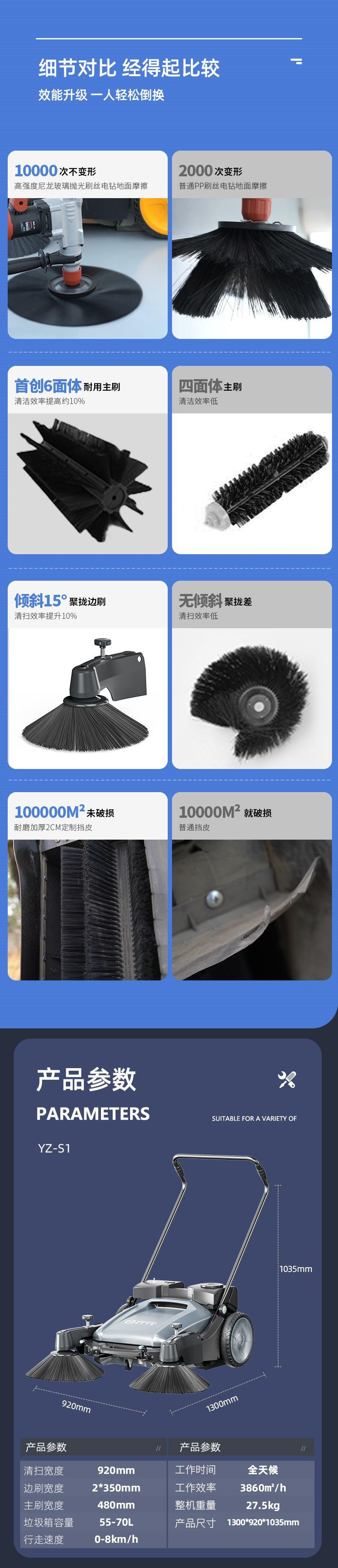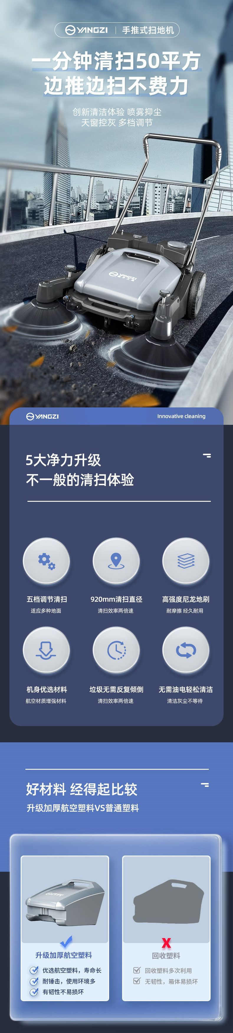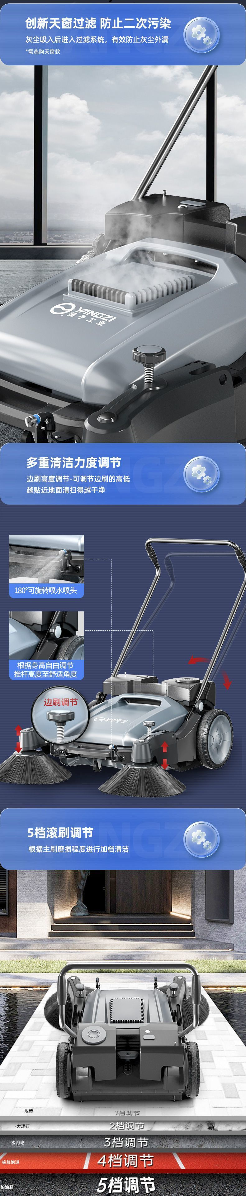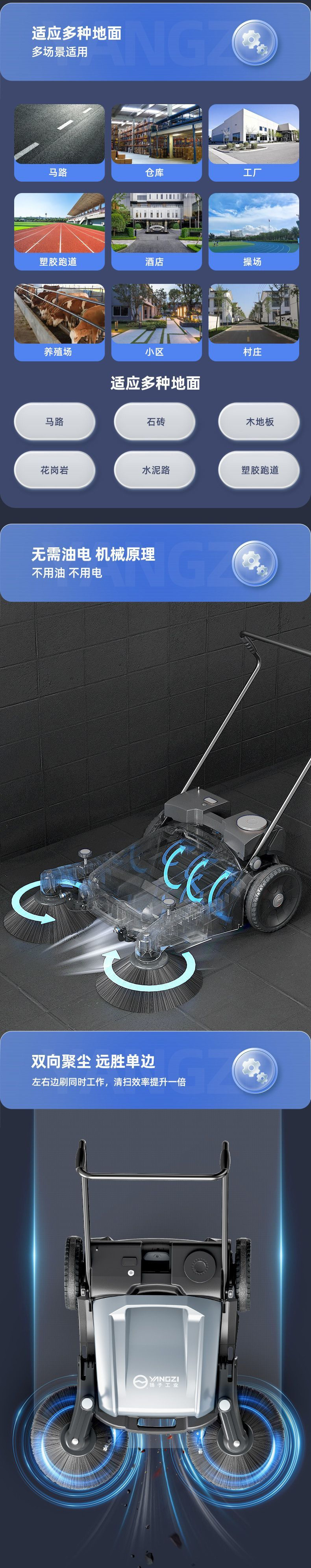 揚子工業用スイーパー手押し式工場作業場農場道路倉庫ダスト無動力スイーパー