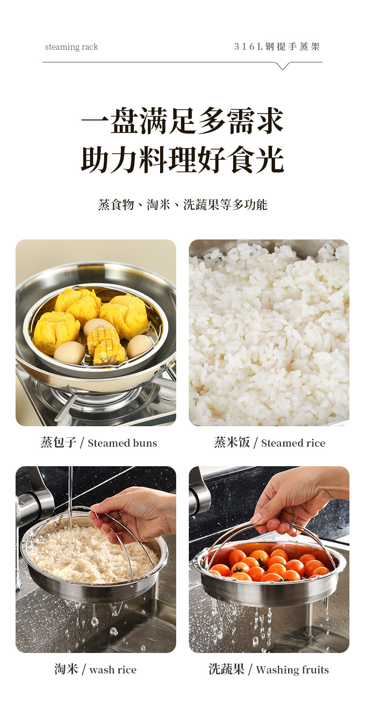 蒸しラック 316 ステンレス鋼蒸しトレイハンドル蒸し器キッチンポータブル蒸し米防水中華鍋蒸し引き出し蒸しグリッド蒸し卵
